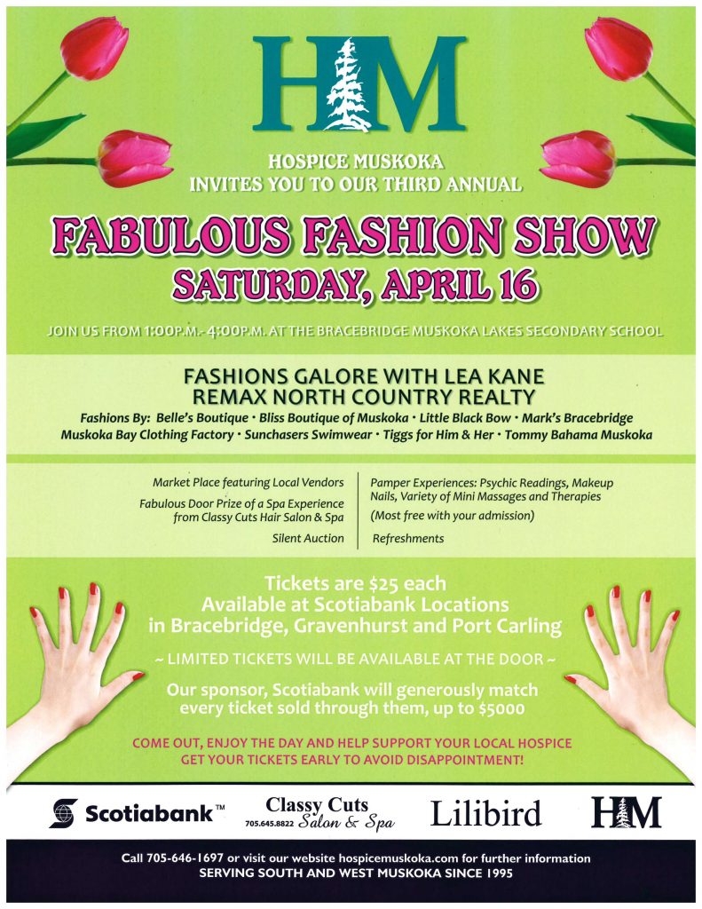While Paul was strutting his stuff on the catwalk, Lea was honoured to be asked to commentate for the annual Fundraiser Fashion Show for Hospice Muskoka.
