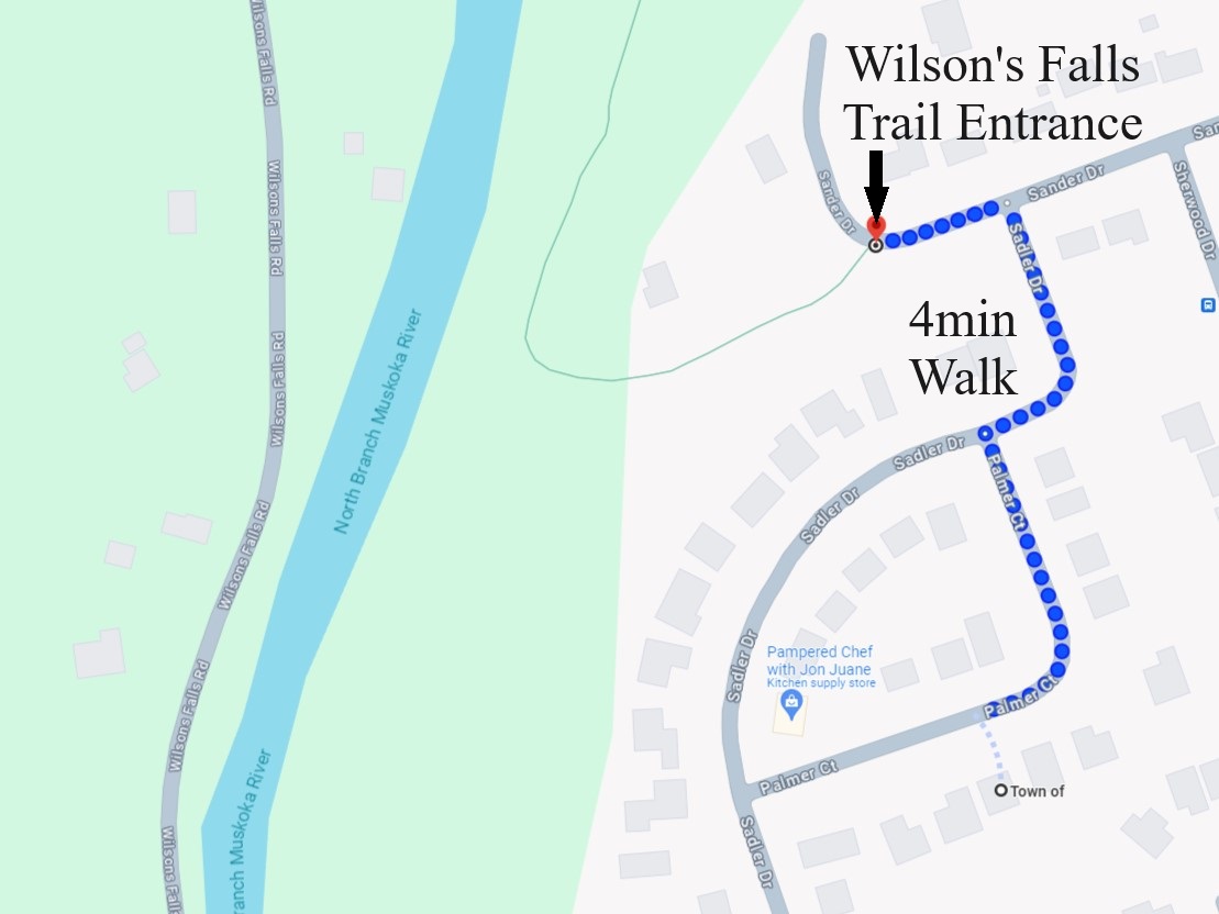 Positioned a mere 300m (a quick 4-minute walk) to the Wilson’s Falls Trail entrance, outdoor enthusiasts will relish the proximity to kilometers of scenic walking and hiking trails meandering through the lush forest and alongside the breathtaking Muskoka River.