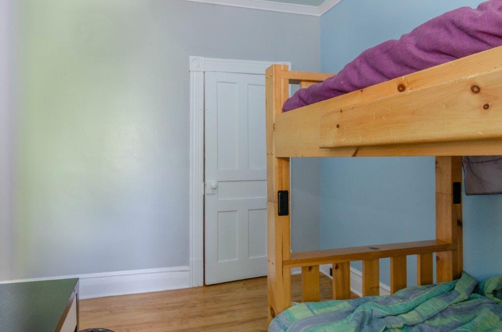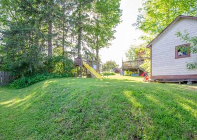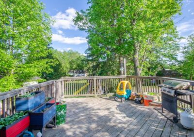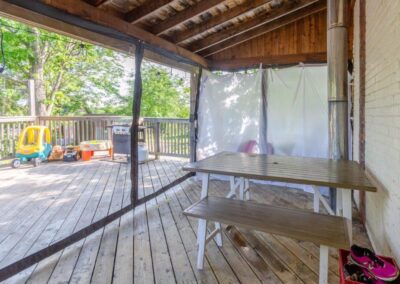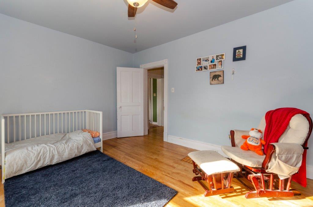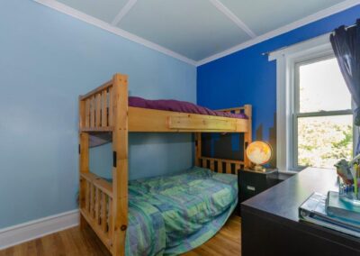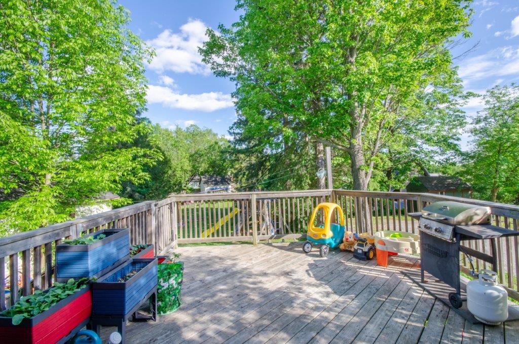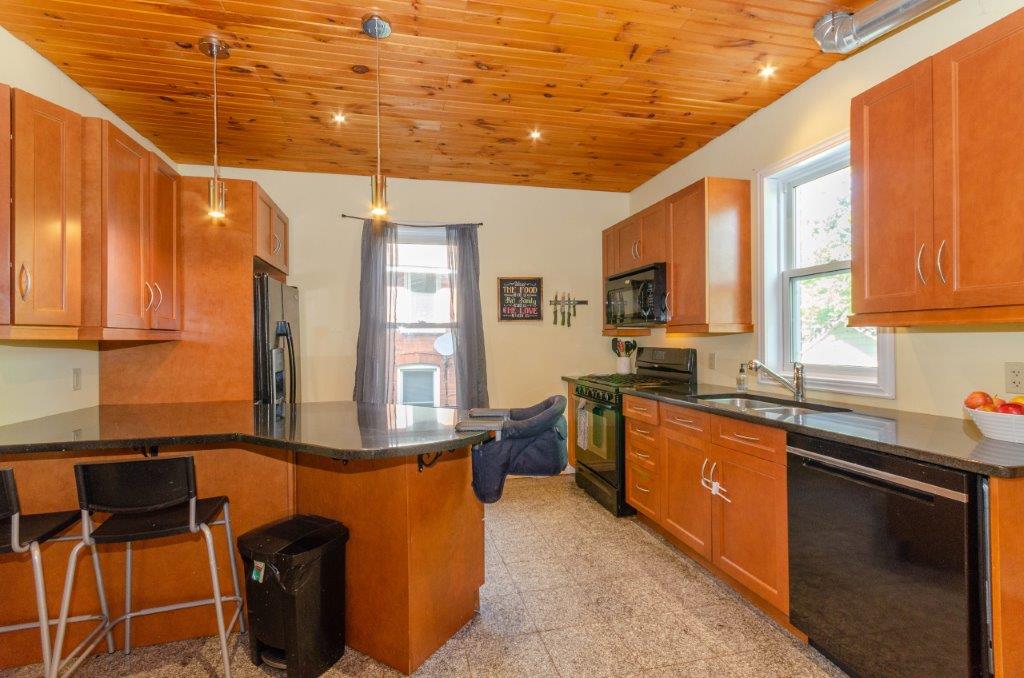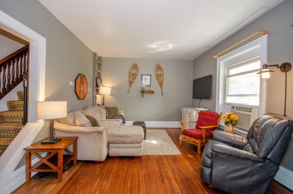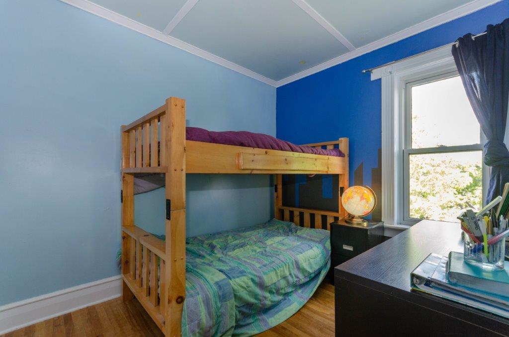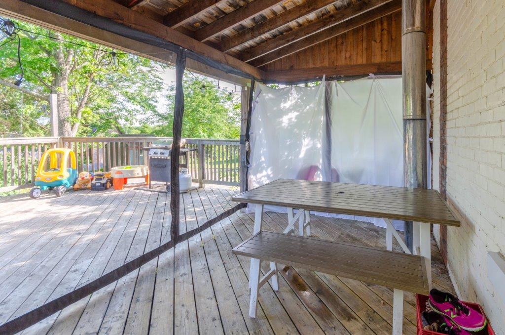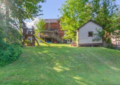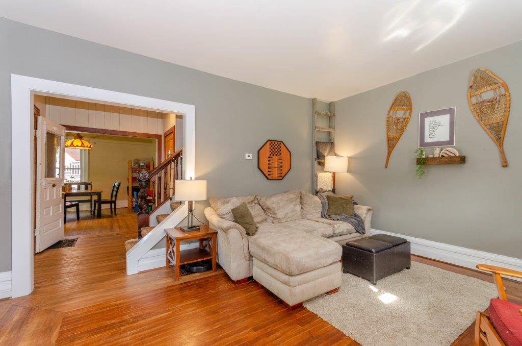 SOLD! – This 4-bedroom in-town home offers contemporary living that still radiates old-fashion charm with exposed brick, high ceilings, and hardwood floors. It’s rare to find a home with 4 bedrooms on the same level! The main floor boasts a spacious dining room, a modern powder room, and a den or office off of the living room. The remodeled kitchen with granite counter-tops and upgraded flooring leads out to the large deck overlooking the tiered, mostly fenced BIG backyard. Downstairs is dry and warm and is currently a great playroom for the kids with 6ft ceilings. The basement offers loads of storage space, and has an exit directly to the ground level patio which is incredibly private and leads to the grassy lawn. Other upgrades include… high efficiency natural gas furnace, on-demand hot water heater, newer windows and doors, and added insulation.