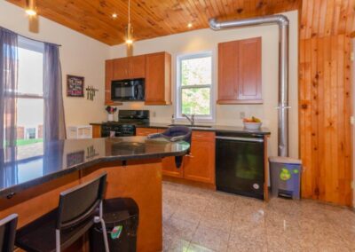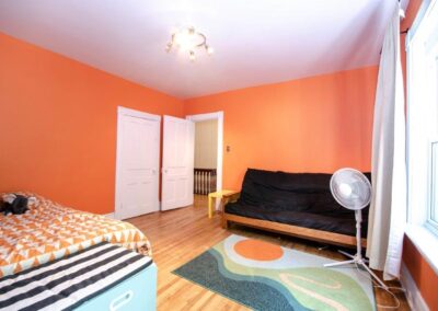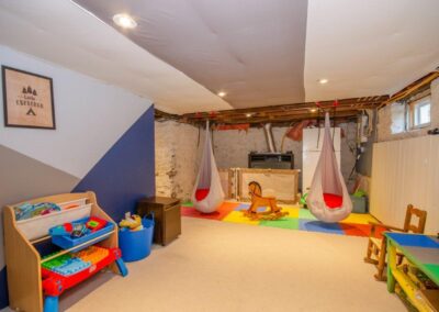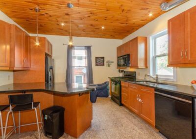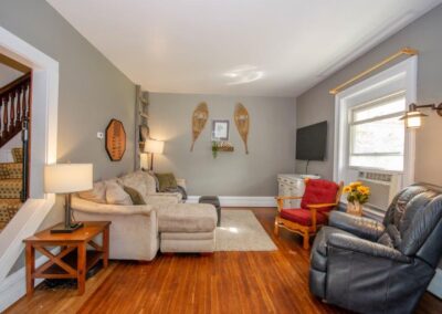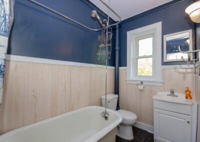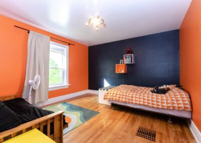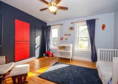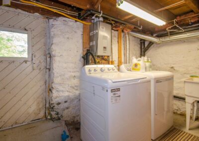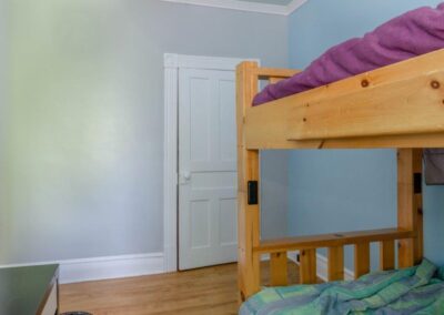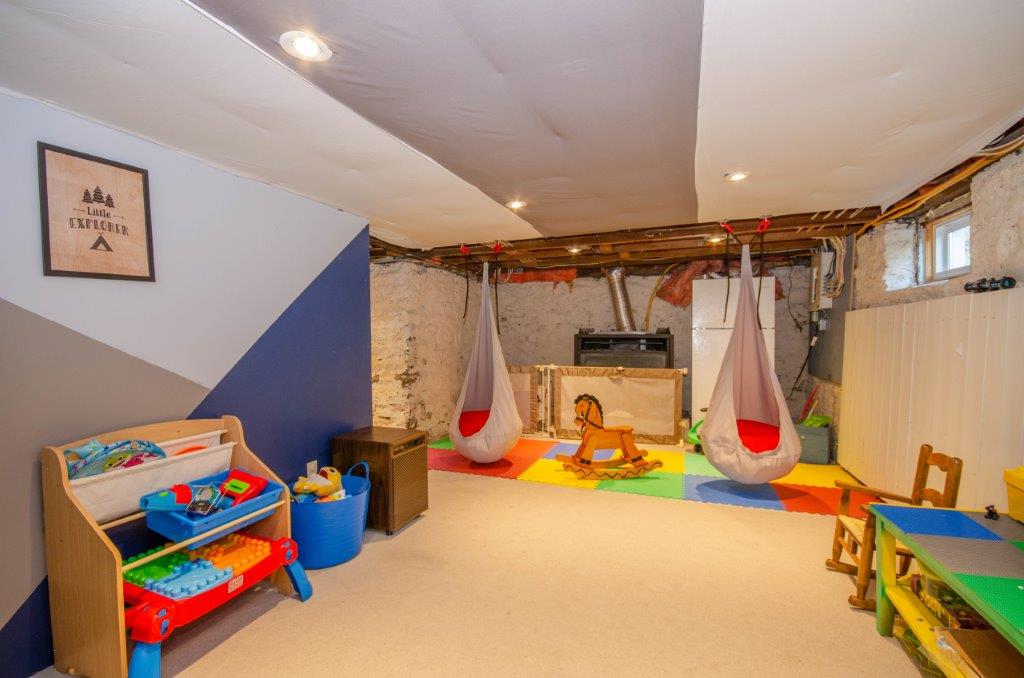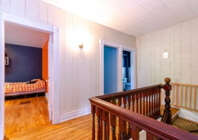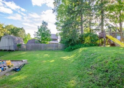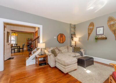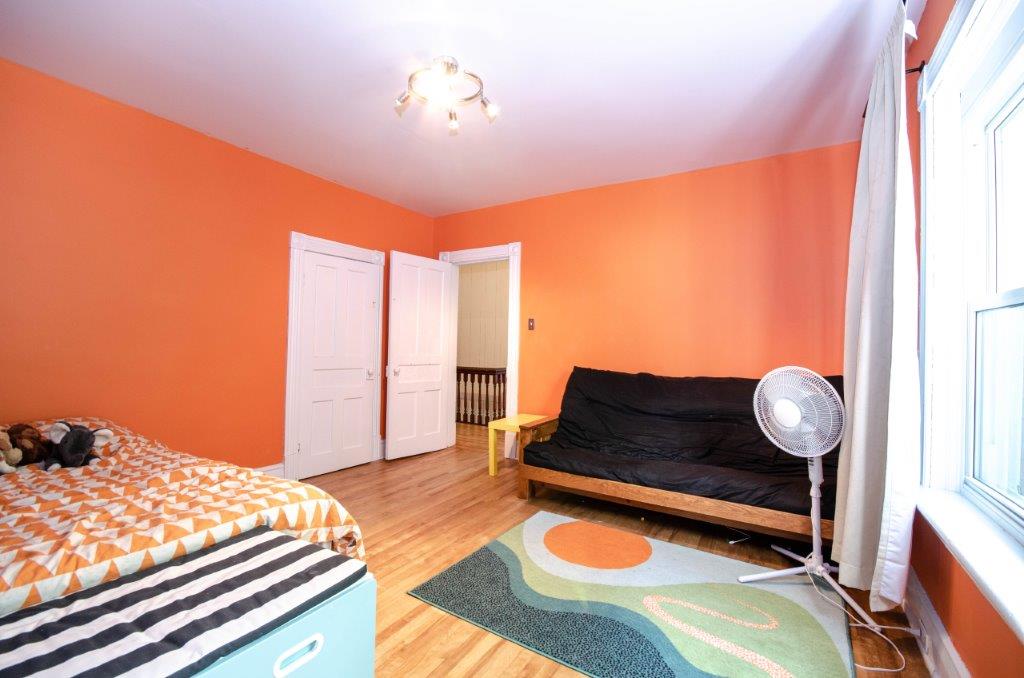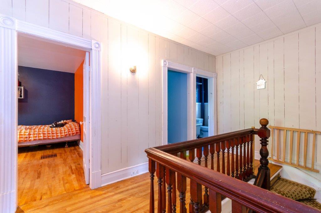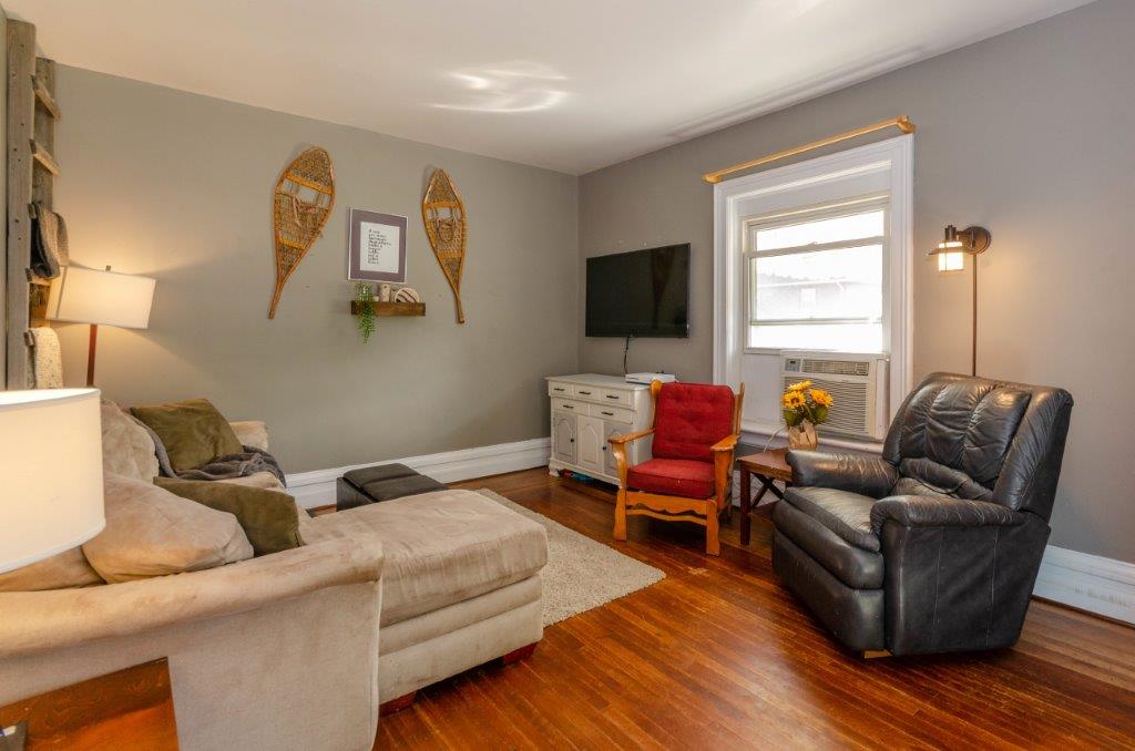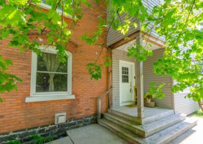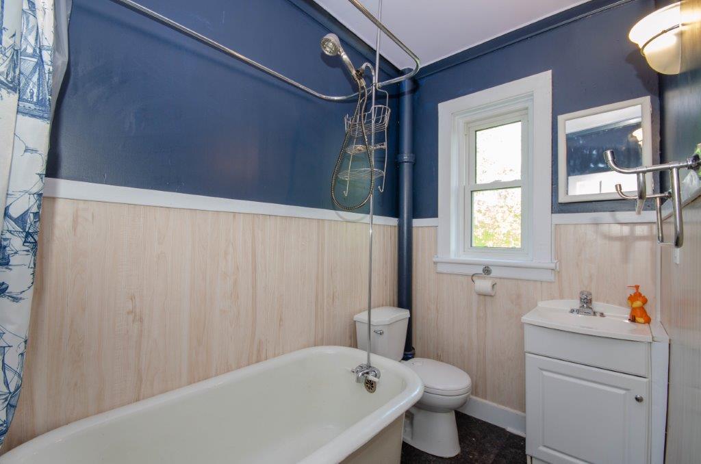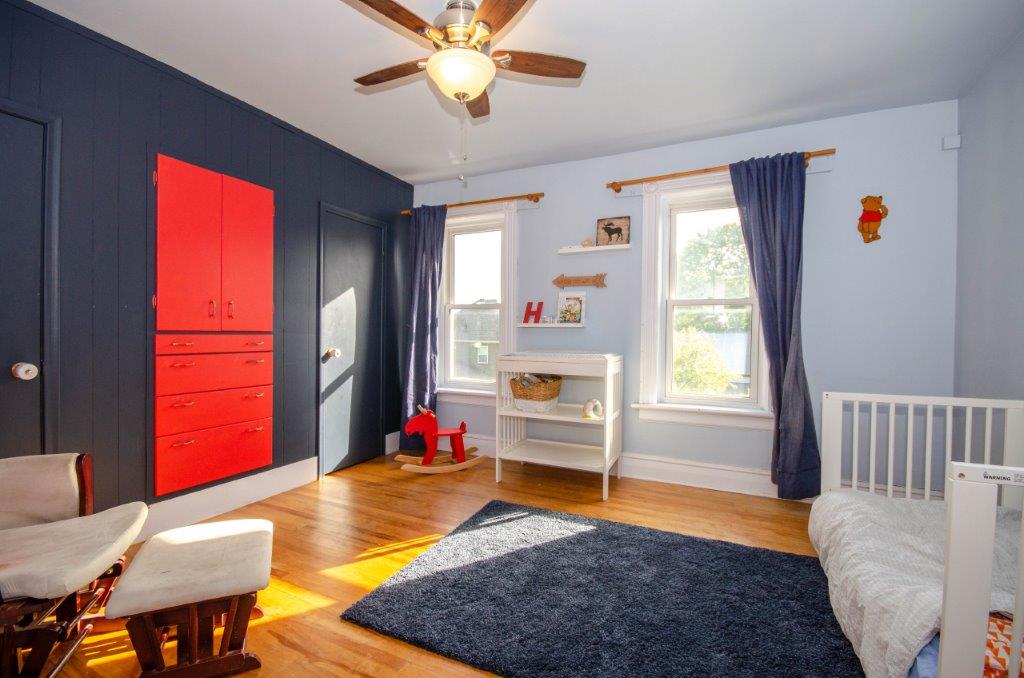 SOLD! – This 4-bedroom in-town home offers contemporary living that still radiates old-fashion charm with exposed brick, high ceilings, and hardwood floors. It’s rare to find a home with 4 bedrooms on the same level! The main floor boasts a spacious dining room, a modern powder room, and a den or office off of the living room. The remodeled kitchen with granite counter-tops and upgraded flooring leads out to the large deck overlooking the tiered, mostly fenced BIG backyard. Downstairs is dry and warm and is currently a great playroom for the kids with 6ft ceilings. The basement offers loads of storage space, and has an exit directly to the ground level patio which is incredibly private and leads to the grassy lawn. Other upgrades include… high efficiency natural gas furnace, on-demand hot water heater, newer windows and doors, and added insulation.