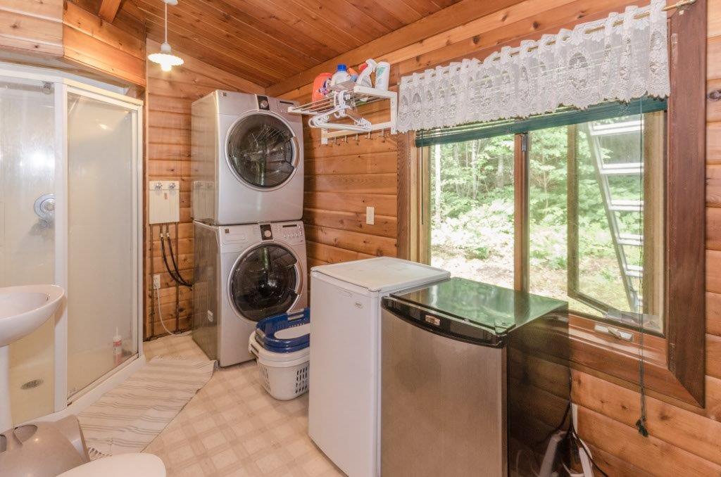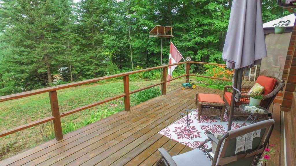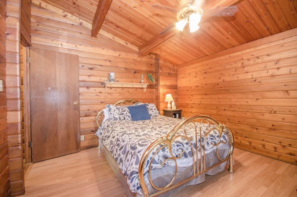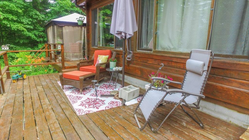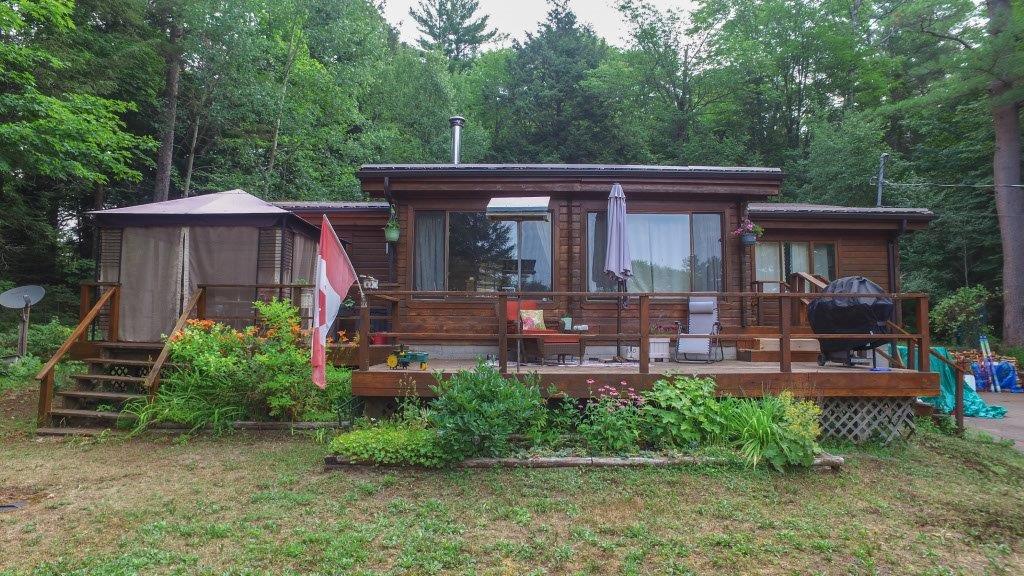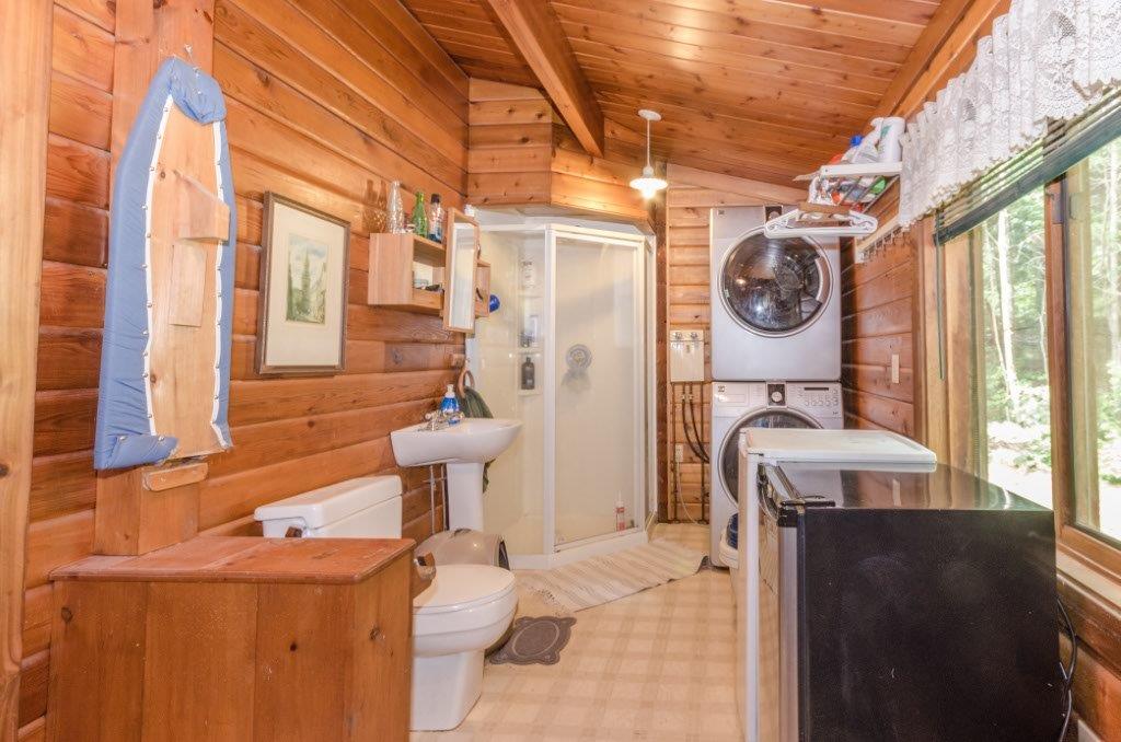 SOLD!! 4 bedroom, 2 bathroom year round waterfront home, just 15 minutes from in-town Bracebridge. With over 1600 sqft on the main floor, you will love the open concept feeling with the vaulted ceiling in this log home. The bedroom are spacious and have lots of cupboard space. Main floor laundry in the 3pc bathroom off of the back of the home. Basement is unfinished… approx 800 sqft of dry crawl space plus 585 sqft (with 6’4″ ceiling) of storage, workshop, teen gaming area, office in the walk-out basement. The waterfront portion is across the road and offers a level lot cleared with a bonfire area. This home is located at the beginning of a year round municipally maintained road, that is a dead end and not overly busy at all. Paddle or boat on roughly 8 km of River between Slater Falls and May Chutes. It’s the best of 2 worlds… a log home nestled in the forest… and all that a riverfront home provides to enjoy. NOTE: The subject property was NOT affected by the recent flooding in the Bracebridge area.