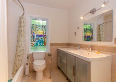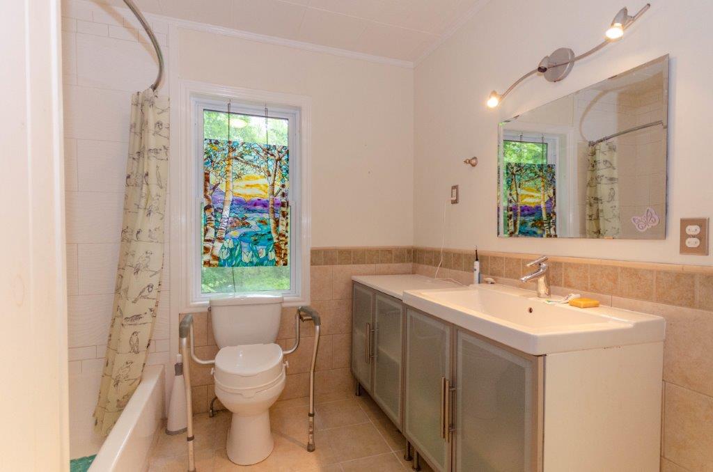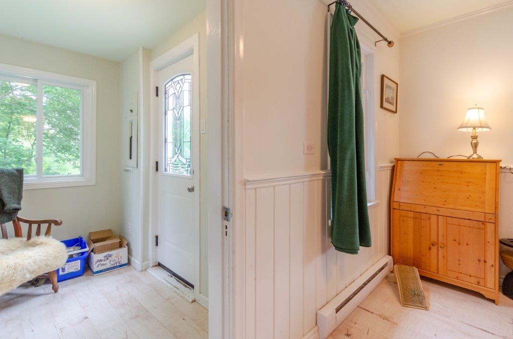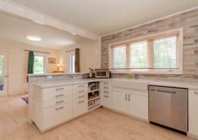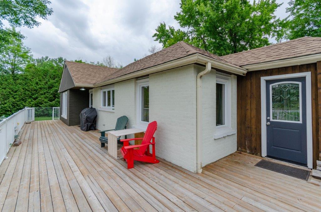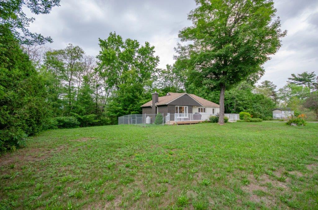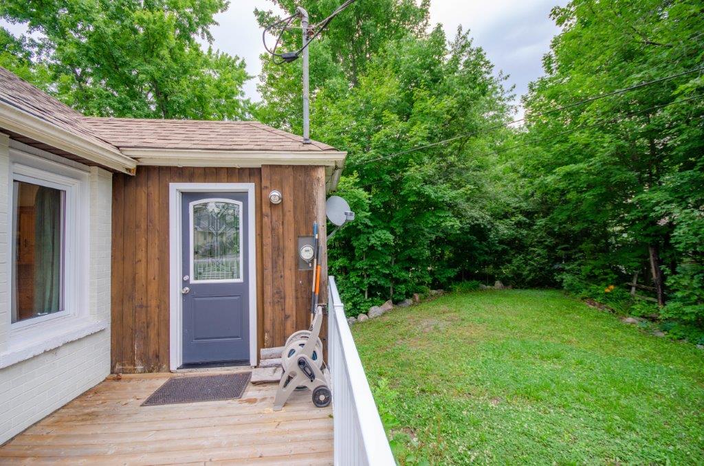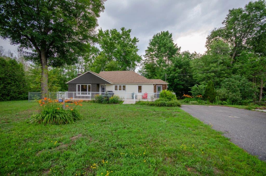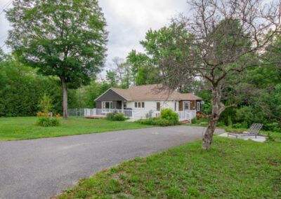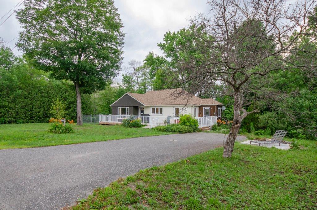 SOLD! 1040 sqft, 2-bdrm bungalow found in the heart of Bala, set back on a very quiet street, just a couple of blocks from the quaint shops and businesses of this amazing community. One floor living includes a bright living room with new propane insert in the stone fireplace, an open concept renovated kitchen and dining area, main floor laundry, large bathroom, and a mudroom entrance. Loads of storage space in the unfinished, partial basement with exposed rock, accessible via the backyard door or via a trap-door in the main floor storage room. Many upgrades over the years include all flooring (carpet, laminate and tile), all baseboard trim, baseboard heaters, thermostats, switches and plates. Duct work is in. New shingles in 2014. On town water and sewers. 200 amp breaker panel. This 1/2 acre ravine lot offers a spacious yard, fenced in dog run, private fire pit area, and is backing onto your own forest. Enjoy south-west exposure on the HUGE front deck with new railing and ramp. Move right in without a thing to do!