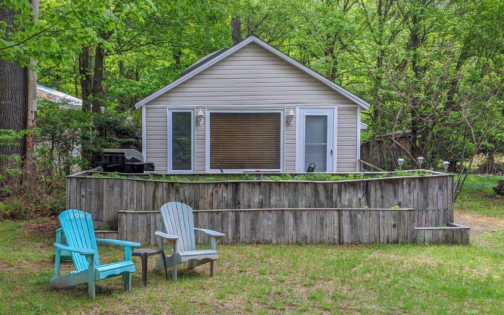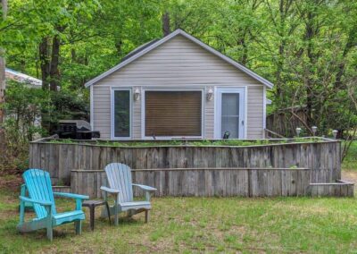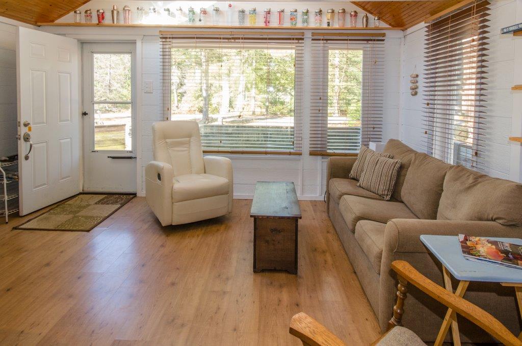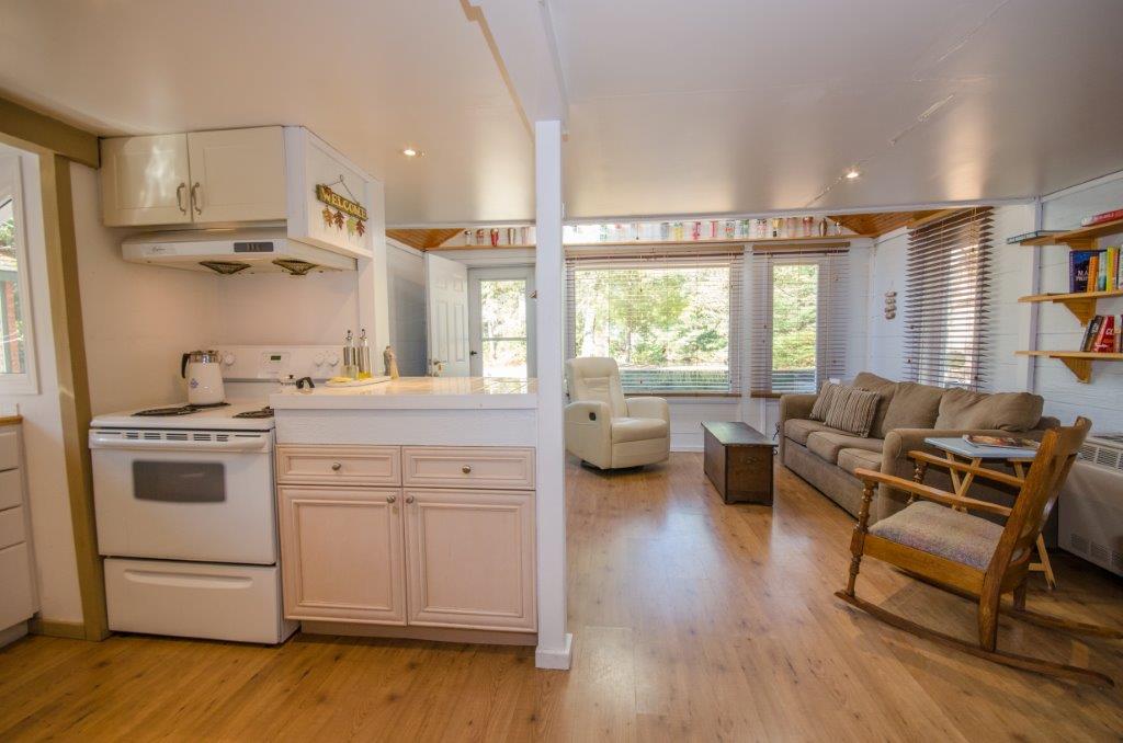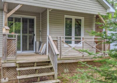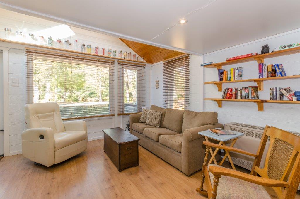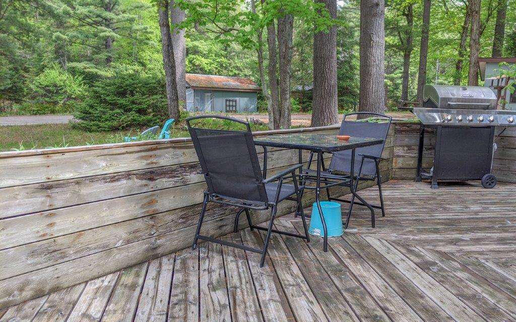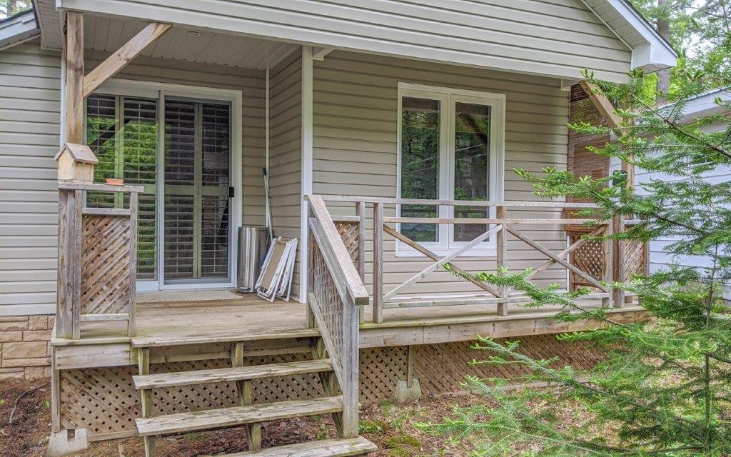 SOLD! – A turn-key cottage retreat in the heart of Muskoka on the well known and loved Muskoka River. This is a peaceful spot to read a book at the water’s edge, unwind, fish, swim, or go for a paddle. Only 10 kms from downtown, just across the river from the undeveloped Bracebridge Resource Management Centre. A beautiful natural view!! Inside offers an open concept kitchen, dining and living area, with the bedrooms in the back. The configuration is more of an open area for the master with a private room for the 2nd bedroom and a walk-out to the back deck. Laundry hook-up is in the master bedroom with space for stack-able units. The waterfront is just across the lane from the cottage for quick and easy access.