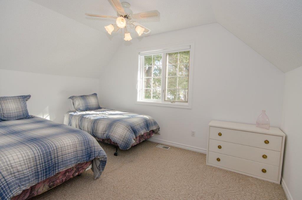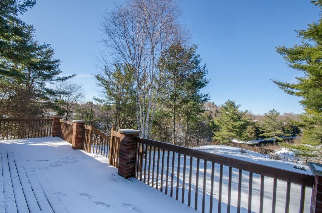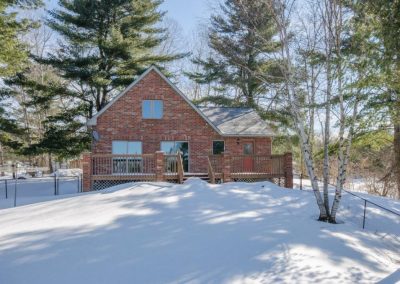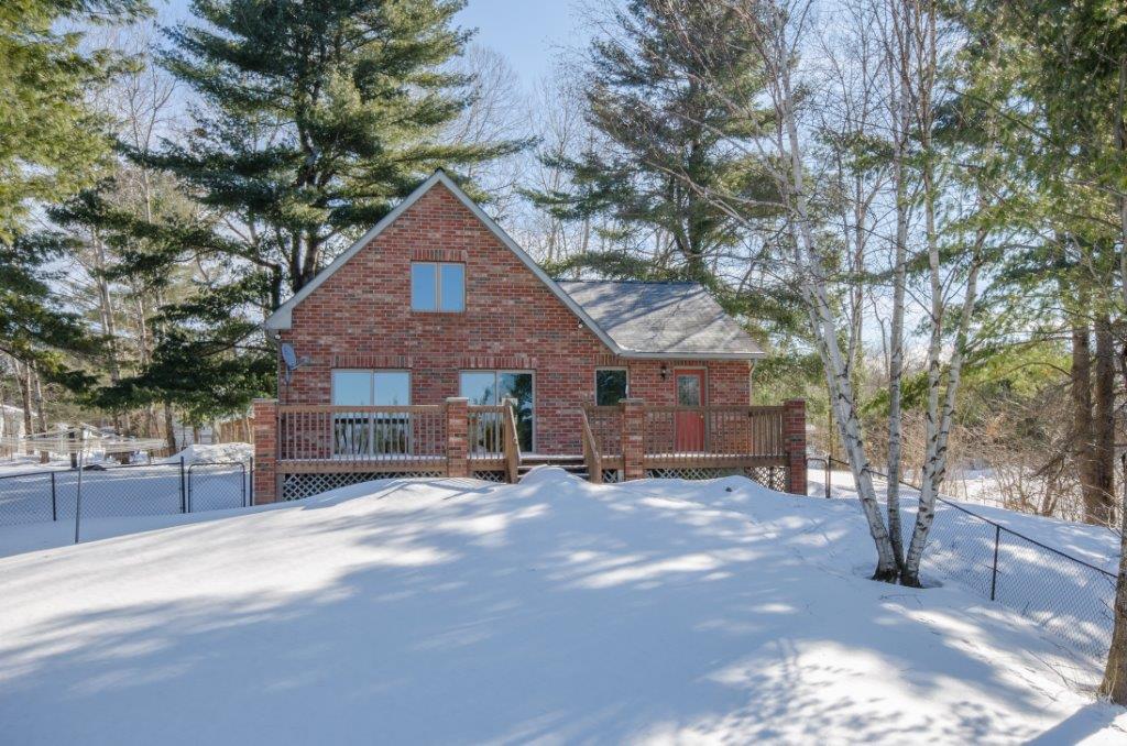 SOLD! This well maintained home sits on 1.5 acres on the banks of the Muskoka River, yet is found in-town and incredibly private. The elevated lot provides a gentle breeze and a lovely view of the Muskoka River. The fenced yard is relatively level and at the water’s edge it is undeveloped providing a natural shoreline. Inside, the living room has cathedral ceilings, a gas fireplace and two sliders leading to a deck spanning the entire house. There are 3-bedrooms, each on a separate floor, and 2 full baths (1 with a Jacuzzi and the other is an ensuite). Downstairs is the 3rd bedroom, family room with gas fireplace, and a little office area. Centrally located in Bracebridge, on town services, yet set back and very relatively secluded with no development immediately to the north or south. When the leaves come out, it is hard to see a neighbour at all.