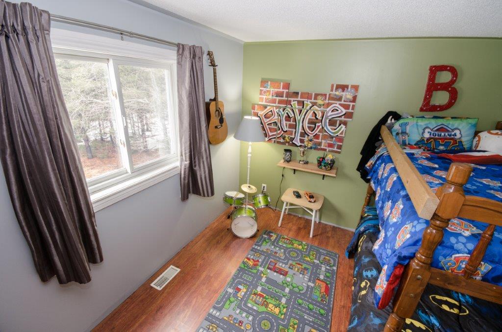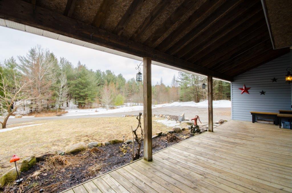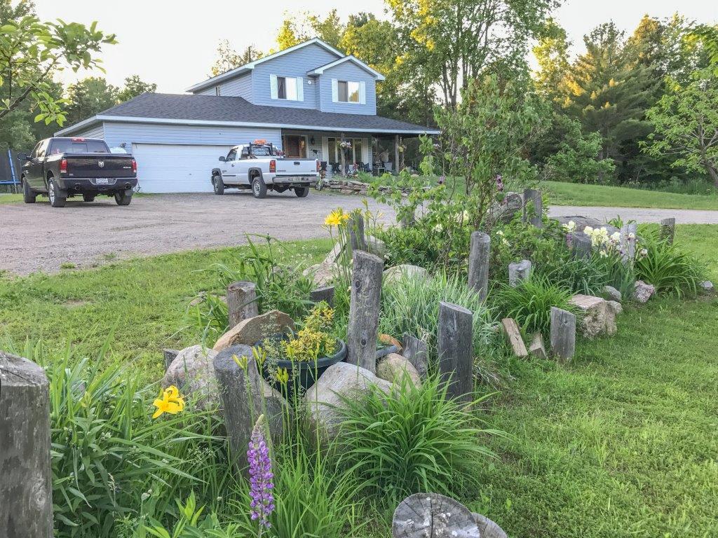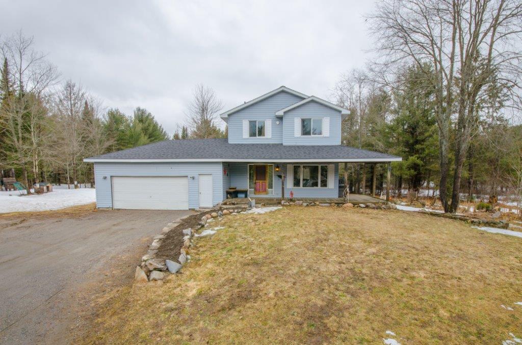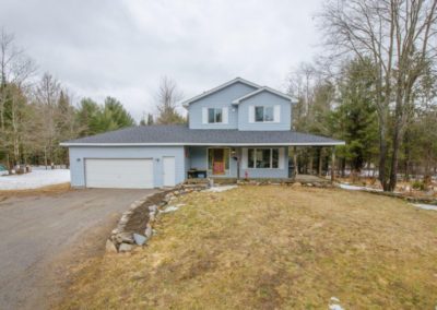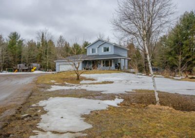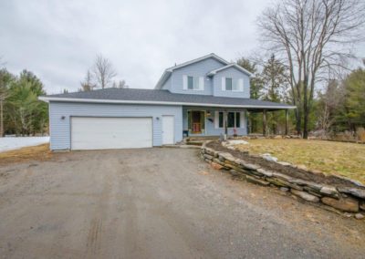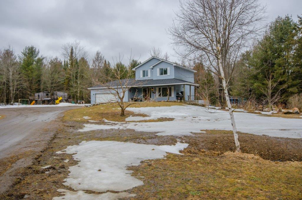 SOLD – 2 storey, 3 bedroom home, located 10 minutes from downtown Bracebridge, on a year round municipally maintained quiet country road. Home is nicely set back from road, on a level lot, and comes with the added bonus of being on a generous 11 acres of private land, including trails. Enjoy your mornings with a coffee on the 20-foot verandah. You will find all rooms both on the main level and upper, bright with upgrades such as laminate flooring. A large main 4 piece bath located on upper level with ensuite privileges and the added convenience of laundry facilities. Other features include: 1.5 car attached garage with direct entry into home via a spacious mudroom (partially finished), 3 year old Napoleon high efficiency forced air propane furnace, central air conditioning, newer shingles, partially finished basement with high ceilings, nicely landscaped, and a custom backyard playground.