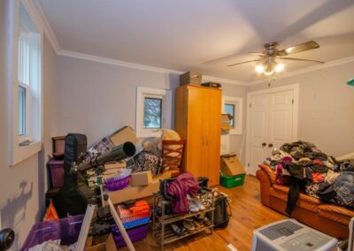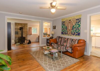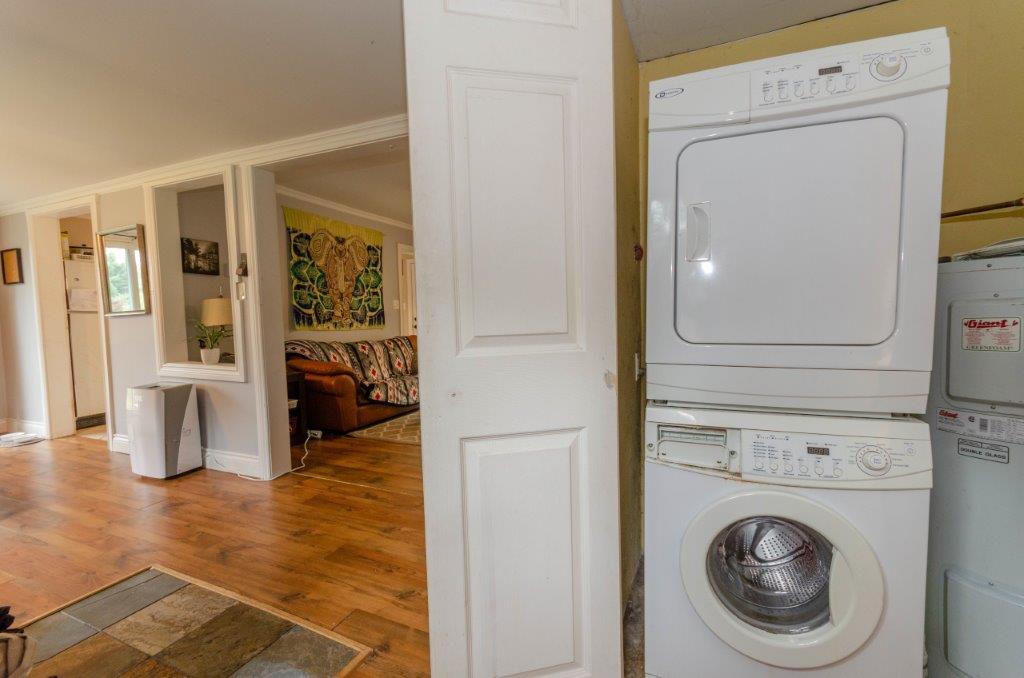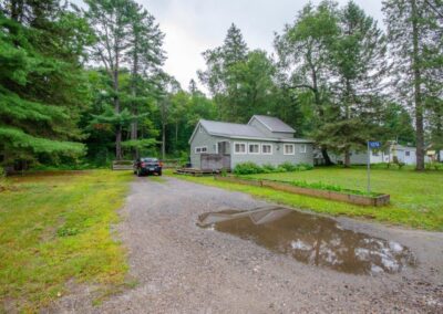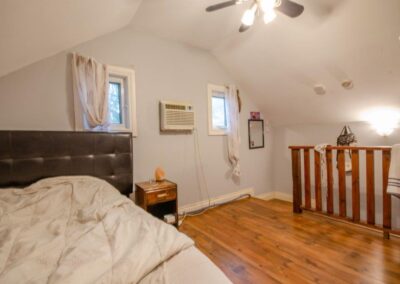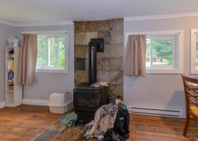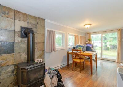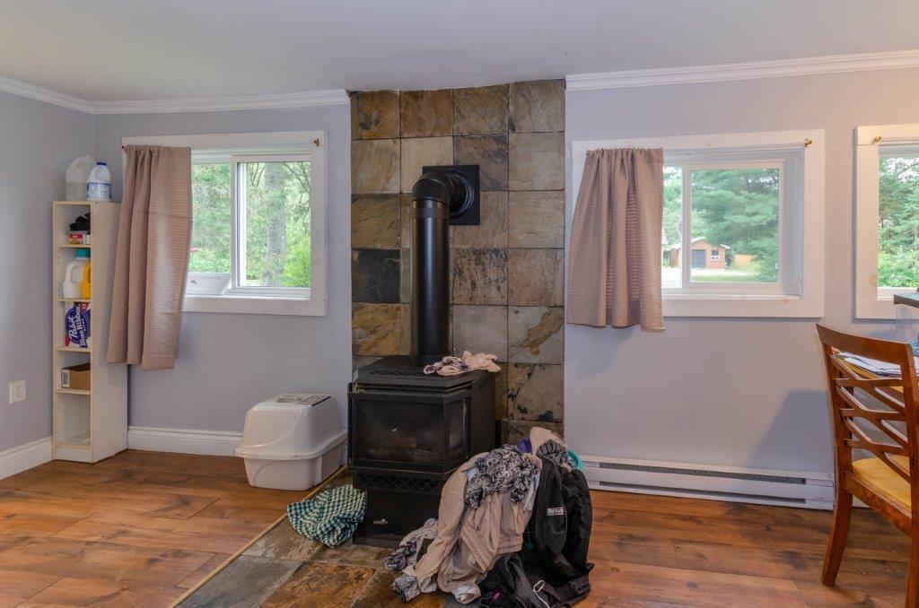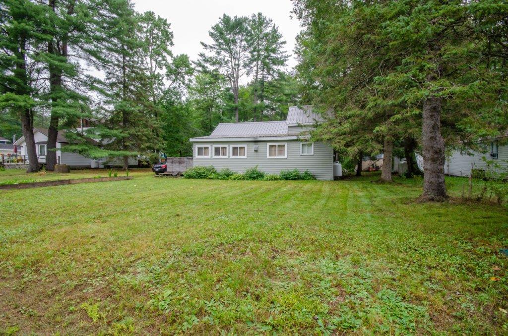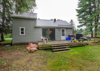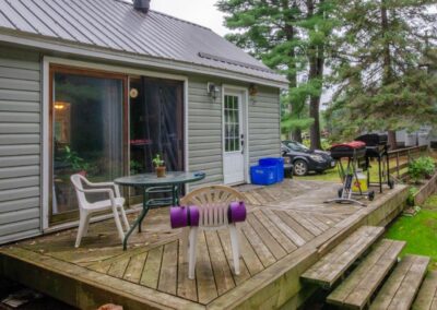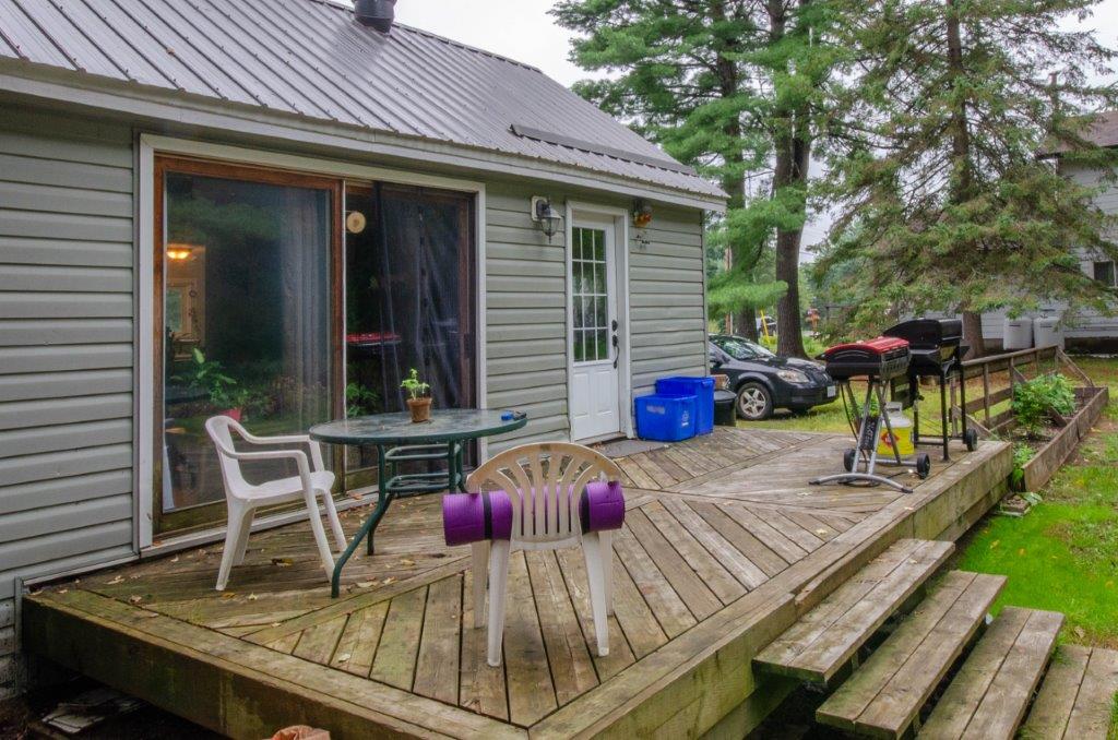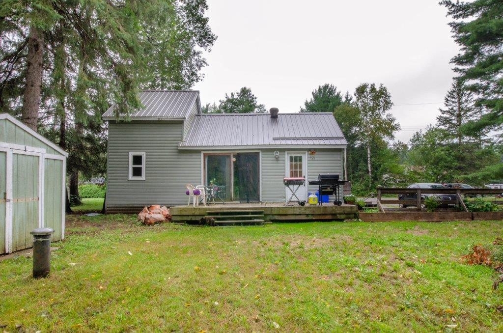 SOLD! – 2 bedroom, year round home on 1/2 acre of land with MUSKOKA RIVER public access just down the road! 820 sq ft home features lots of natural light with newer windows and a cozy propane fireplace. On the main floor… 1 bedroom (with 3 newer windows and a closet), 4pc bathroom and laundry… with the 2nd bedroom upstairs. Great access to the 2 decks from the kitchen, dining room AND living room! Spacious backyard with deck, storage shed, and backs onto an undeveloped private forest. Crawlspace is insulated with spray foam around the perimeter and has a space heater for the pipes in the cooler months. The ground has a plastic vapour barrier. The metal roof is great for low maintenance. Drilled well. Septic was pumped in 2018.
