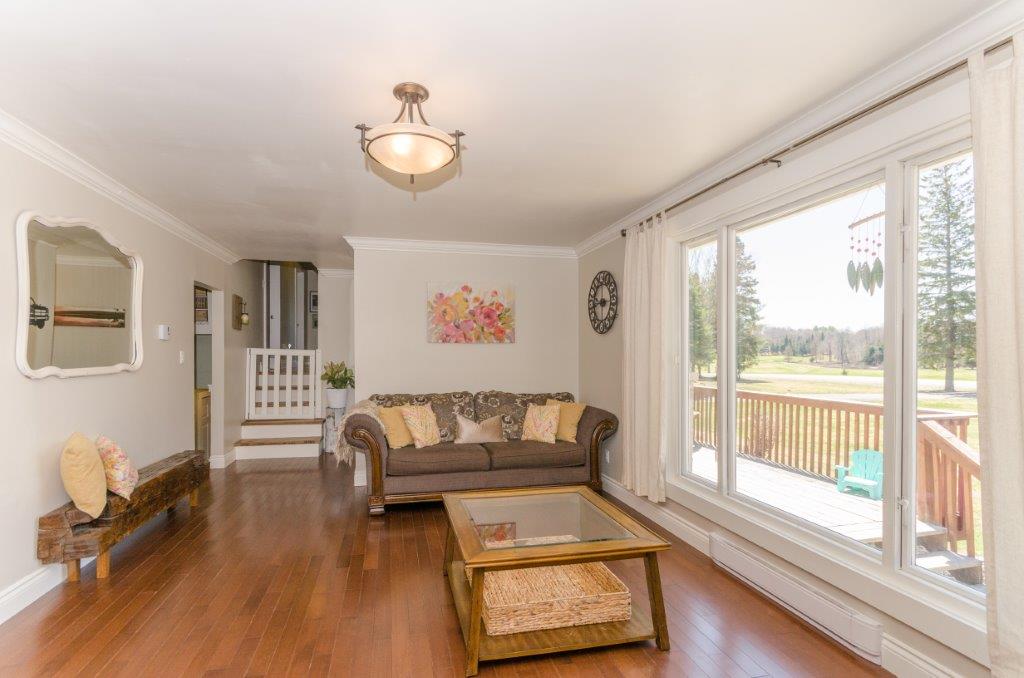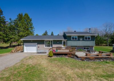 SOLD – 4 bedroom side-split located less than 10 minutes from Bracebridge town center. This spot is fabulous as it is directly across from the Bracebridge Golf Club and backs onto an undeveloped property. The lot is level with double gravel drive / plenty of parking, and there is an attached single car garage. The interior of home has been well cared for and is bright and welcoming on all levels. The 3-season Muskoka Room is part of the 1,615 sq ft of this home, plus there is 500+ sq ft of dry storage in the basement! Enjoy the warmth of the cozy woodstove in the lower level, which heats the entire home for the most part. A great country setting, yet just 3 minutes and you are on highway 11. The Seller will be completing the following… (1) Replace all facia on the house; (2) Reinforce the joist in the laundry room that has been cut; (3) Re-shingle the Muskoka Room with 25 year shingles.