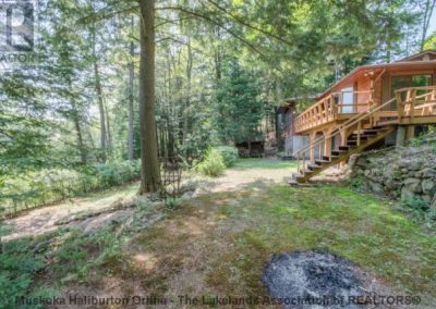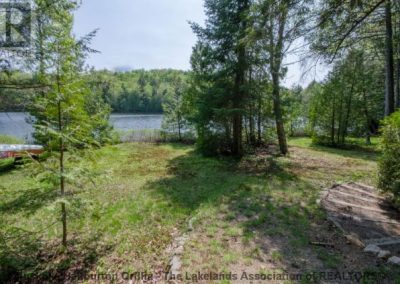 SOLD! 120-feet of waterfront on Ril Lake, on a well treed and virtually level lot stands this 3 bedroom, cedar sided, year round cottage or home. Relax on the wrap around deck overlooking the badminton area and peaceful waters edge. Other features include a full basement with roll up garage door, fantastic storage space for all the summer and winter toys. The walk-out basement could easily be finished providing over 1600 sq ft of living space. Well cared for and incredibly private on a year round municipally maintained road, just a 10 minute drive to the quaint village of Baysville in the Lake of Bays area.