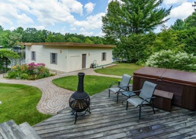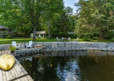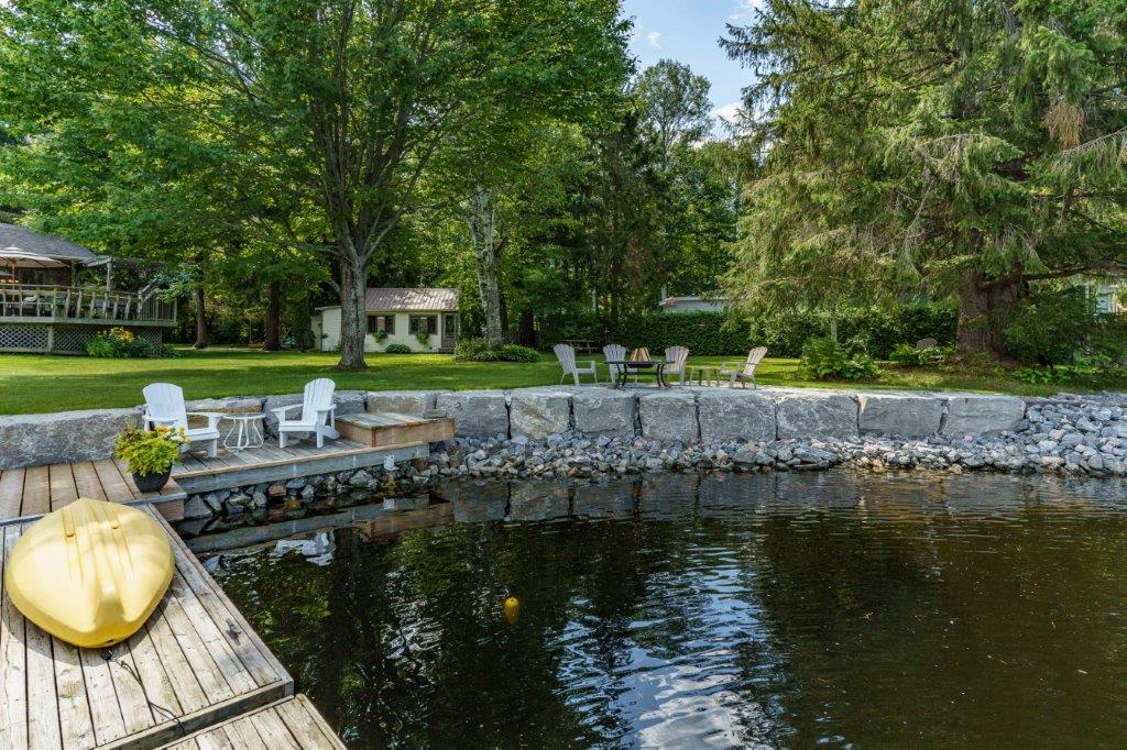 (4) The Lot… 200 feet of waterfront, level, well treed, private, extensively landscaped, and just under 1.5 acres;