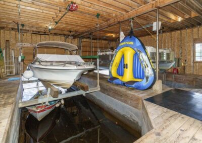 (2) Oversized 2 slip boathouse, complete with hoists, Bye Bye Birdy Boathouse Screens, and 1000+ sq ft Duradek rooftop ready to be finished and enjoyed;