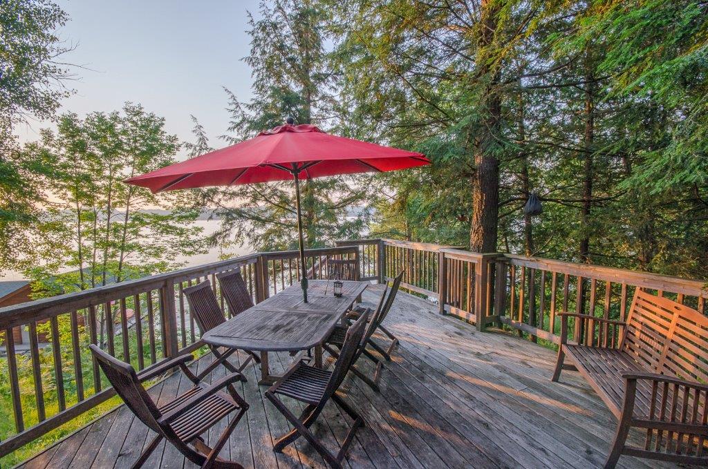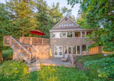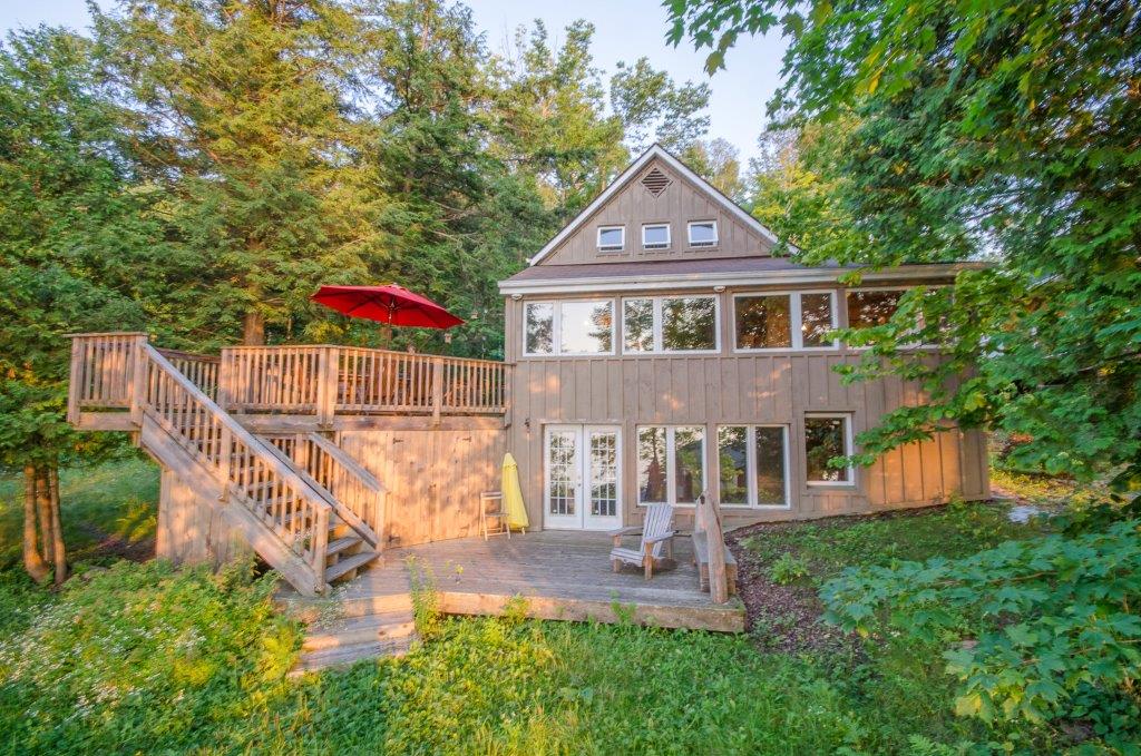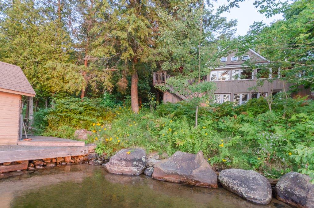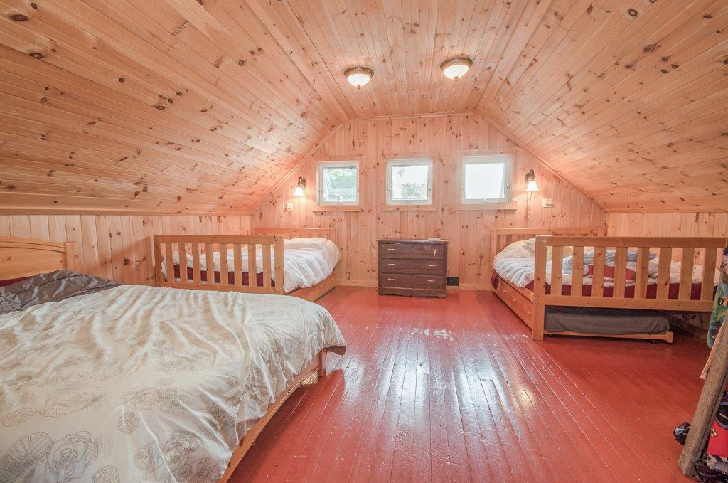 SOLD! This 1500 sq ft cottage has space to make it a 3-BEDROOM home! The 19×17 second floor w/2pc bath could easily be made into 2 bedrooms. Fully finished walk-out lower level is bright & spacious enough for a potential 3rd bedroom! Not just a beautiful cottage with a massive dock, it also has a large Bunkie for the kids or overflow guests. Huge deck is great for entertaining, lower level also has a deck, loads of outdoor storage, a dry-boathouse, a bonfire pit at the cottage AND on the dock. The paved driveway gets you into the cottage easily, and from the cottage to the water is moderately sloped with easy lake access and has shallow to deep mixed bottom shoreline. Prestigious Peninsula Lake is part of a chain of 4 large lakes offering 40+ miles of boating. Pen Lake has first-rate resorts, and boating access to golf, dining, and shopping in downtown Huntsville. A few perks here are propane heat, central A/C, drilled well, propane stove, and most furnishings included.