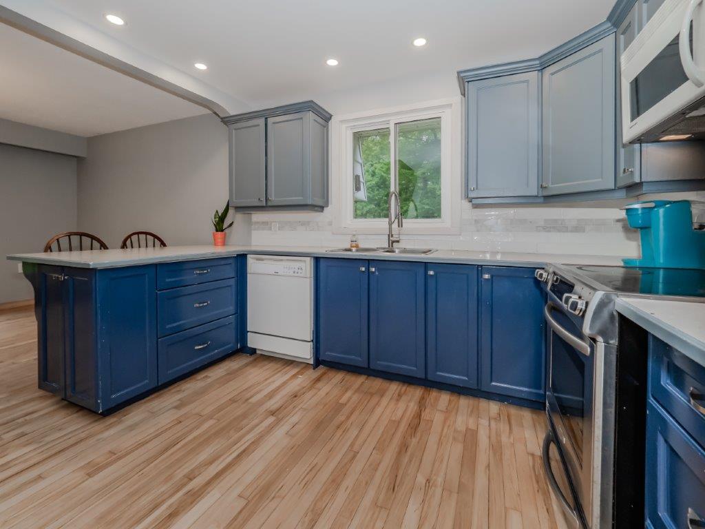 This 3-bedroom, 1.5-bathroom gem, with an additional office/den, offers 1,700 sq ft of thoughtfully designed living space, plus a stunning 19×14 Muskoka Room and 400 sq ft of storage. As you step inside, you’ll be greeted by a generous foyer that leads into a spacious living room featuring a cozy gas fireplace. The patio doors open up to the generous Muskoka Room. Here, you can relax and enjoy panoramic views of the large, level backyard adorned with mature trees. The open-concept kitchen with breakfast bar and dining area provide an ideal setting for family gatherings and entertaining guests. Recently updated, this home boasts new carpet in the bedrooms and living room, and has been freshly painted throughout.