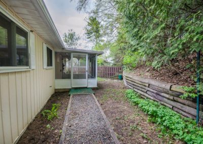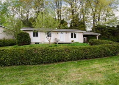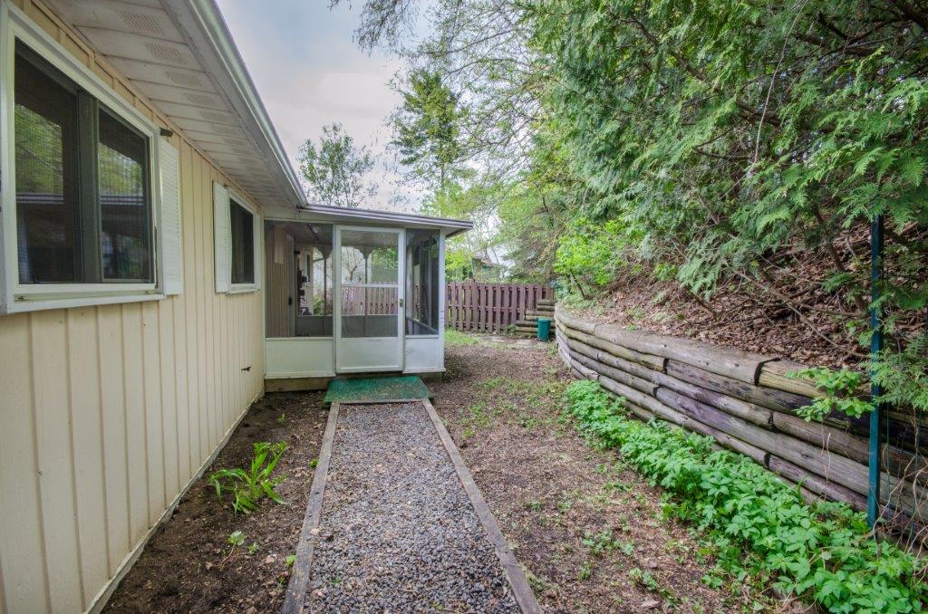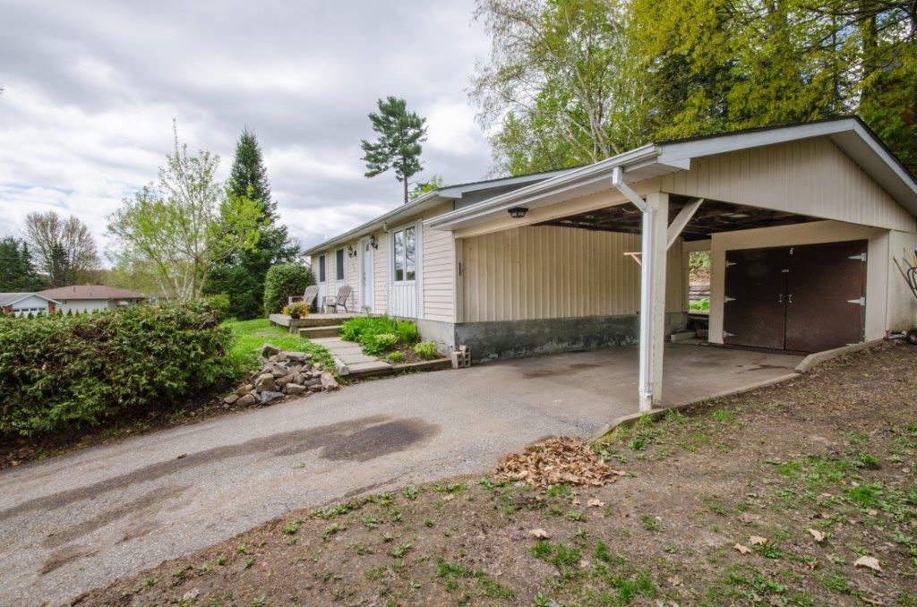 SOLD! This 4 bedroom, 2 bathroom, 1725 sq ft bungalow is located in-town across the street from a little parkette on the Muskoka River. On the main level you will find 3 bedrooms, the living room, kitchen, dining room, and a screened Muskoka Room off of the back entrance. Downstairs is bright, fully finished, with a huge rec room, gas fireplace, the 4th bedroom, a 3 piece bathroom, a home office/storage room, and separate laundry. The backyard is small but very private and needs very little maintenance. On the carport side of the house there is a good size side-yard surrounded by cedars with a second driveway. This home is within walking distance to amenities, yet on a quiet cul-de-sac. NOTE: Heated by a Gas Hot Water Boiler, not electric baseboards.