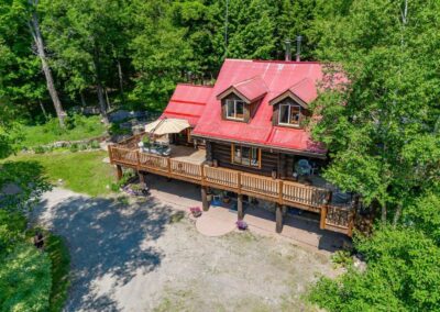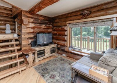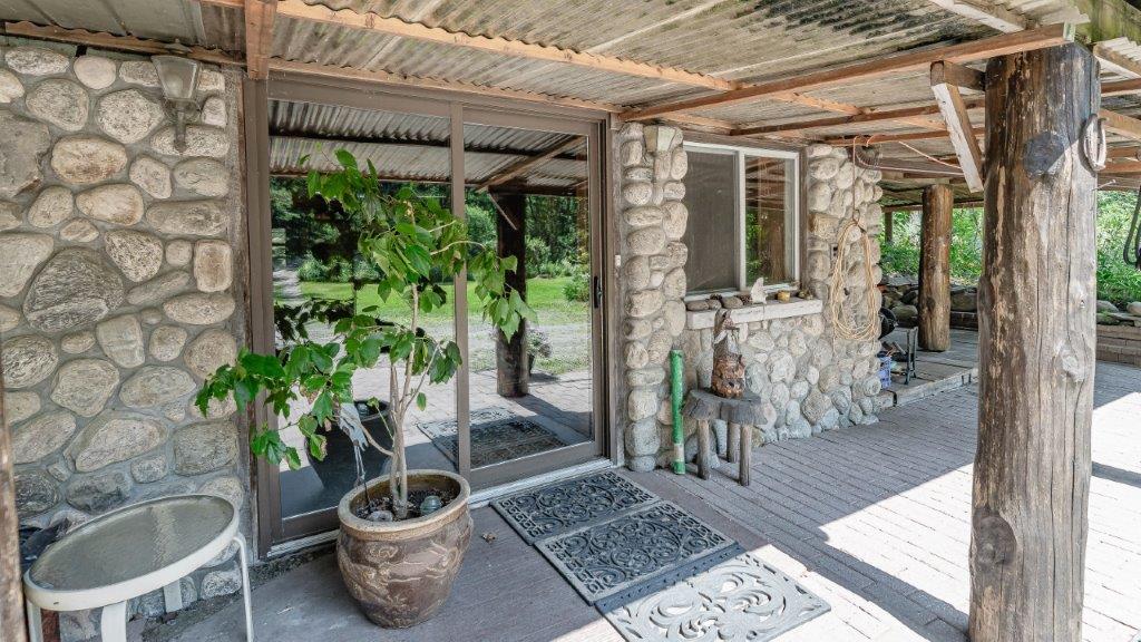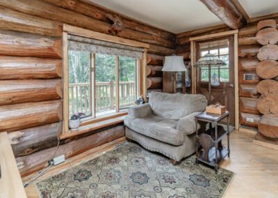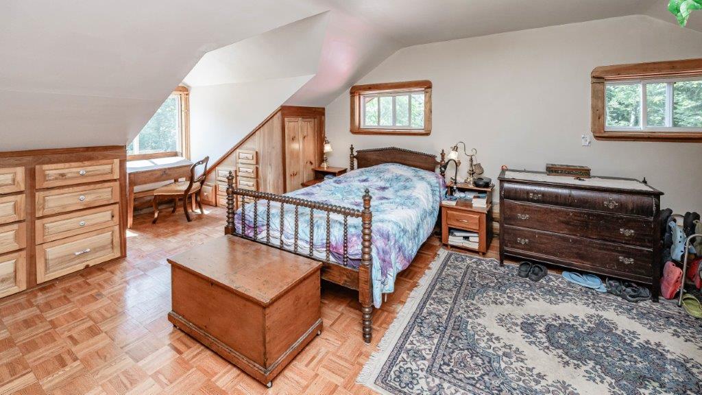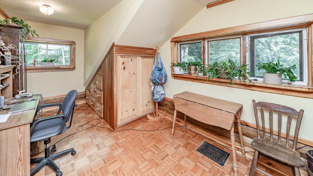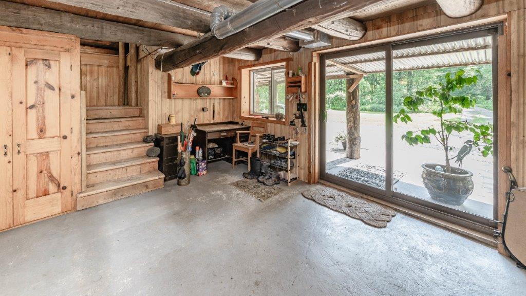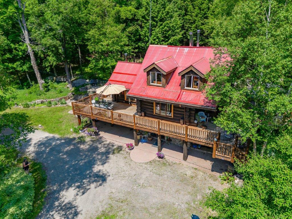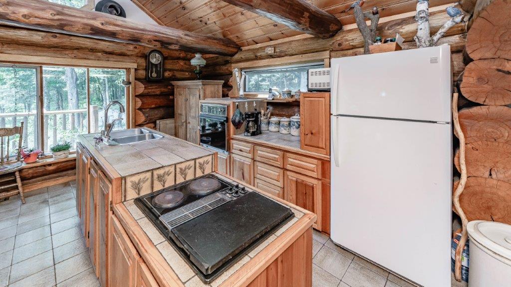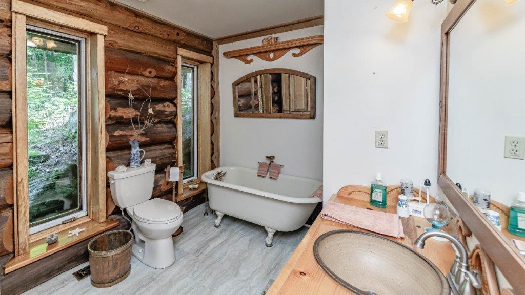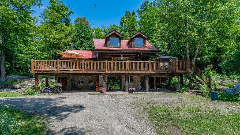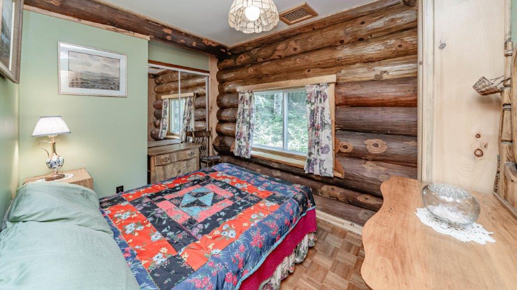 LOG HOME: Built from trees off the land, offering 2000+ sqft of living space including the unfinished walk-out basement. On the main floor, there is an open concept living room with fireplace, eat-in kitchen, vaulted ceiling, hardwood floors, large pantry, main floor bedroom, 3pc bath, laundry, and a large wrap-around deck with newly installed railings. Upstairs, where the loft is being used as a bedroom, there is also a 3pc bathroom, a private bedroom/office, and loads of built in storage. Downstairs, there is the newer 2nd fireplace, septic hook-up for a future bathroom, and loads of space to create another bedroom or family room (perhaps even an in-law suite)! The main heating/cooling source is a Geothermal System providing outstanding results at a fraction of what a forced air propane/oil system would cost to run. The home is wired for a generator with a dedicated hydro panel.