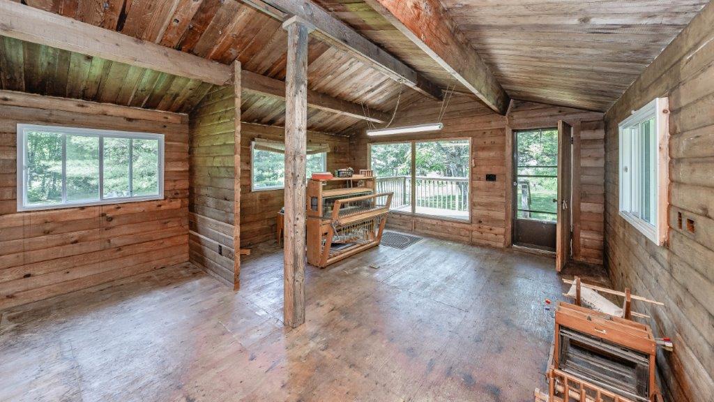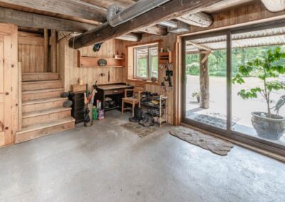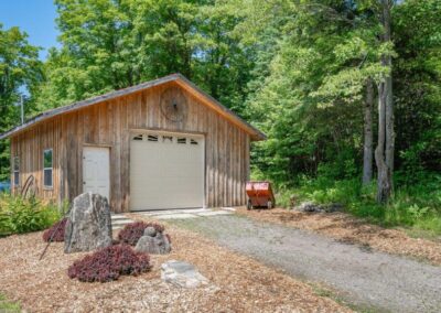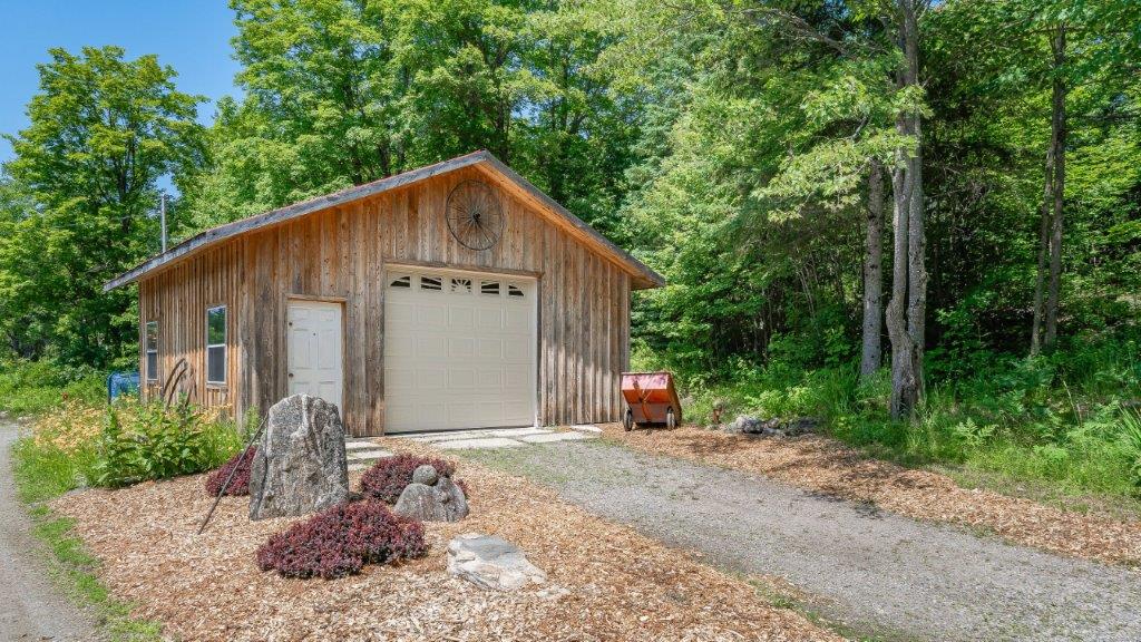 DETACHED GARAGE: 22×23 Post & Beam with poured pad, hydro, remote opener, and built using logs from the property.