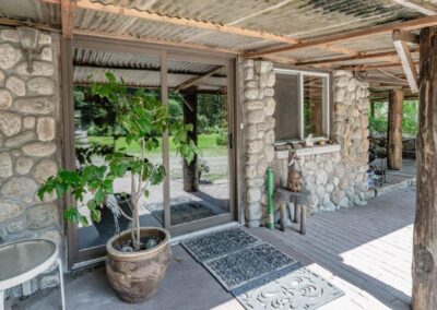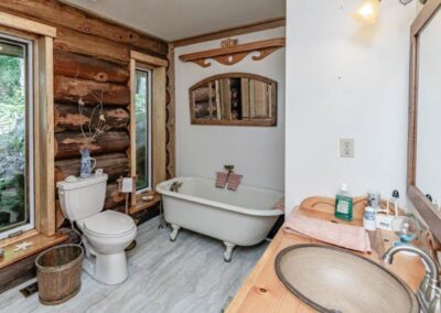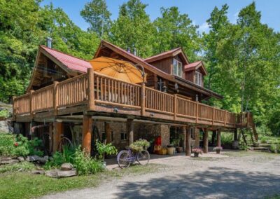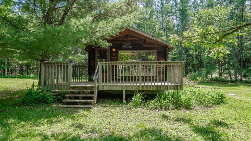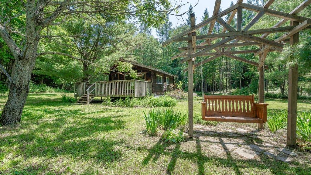 PANABODE LOG CABIN: 23×15 plus a front deck, a greenhouse with passive solar heat behind, hydro, and a basement ideal of storage, surrounded by nature and tucked off to the side.