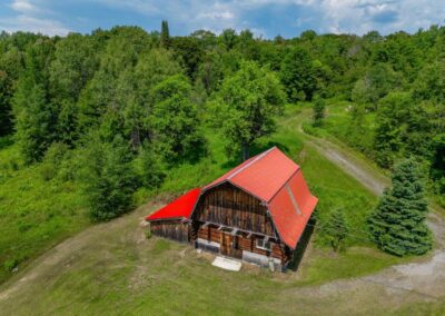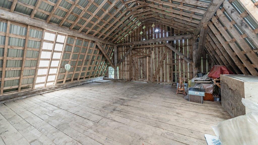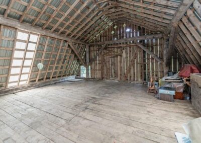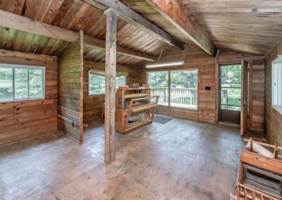 BARN WITH LOFT: 23×23 barn with full loft, and 23×15 storage to the side, also using property logs.