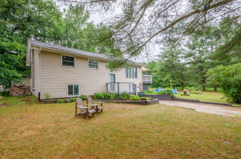 SOLD! Just 15 minutes south of Gravenhurst, this country home sits on a large lot within a 4 minute walk to a peaceful Sparrow Lake access point. Better yet… launch your boat just 1.5 kms away to go for a ski, tube ride, fish, cruise and spend hours exploring the Trent Severn Waterway. This open concept raised bungalow features 2 bedrooms on the main floor and 1 in the walk-out lower level (bedroom just needs a little finishing). This home has so many upgrades in just the past 4 years… <<NEW>> Master & bedroom flooring, wood stove, shingles, attic insulation r-50 blown-in, mascerating pump, washer/dryer, 2nd bathroom, all insulation and drywall on lower level, all flooring on lower level, firepad for wood stove, fence and raised veggie garden, water pump, and upstairs fan. Outside… The side yard is spacious and clear, and the backyard is fully fenced and is currently being used as a dog run.