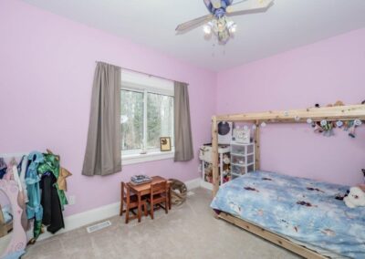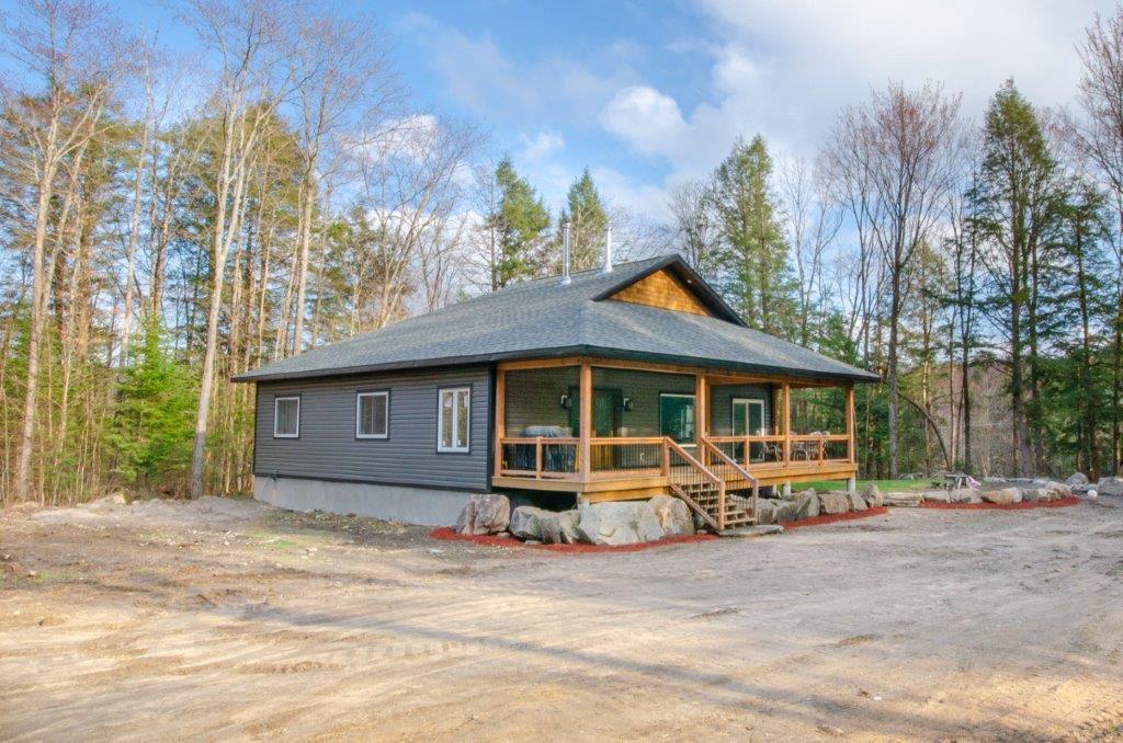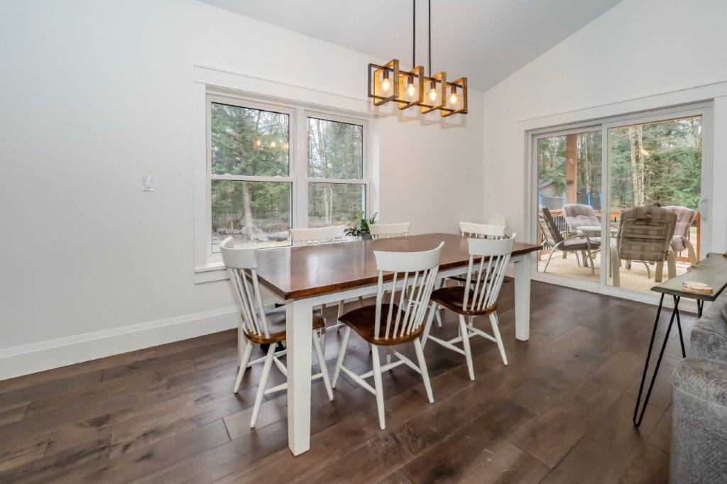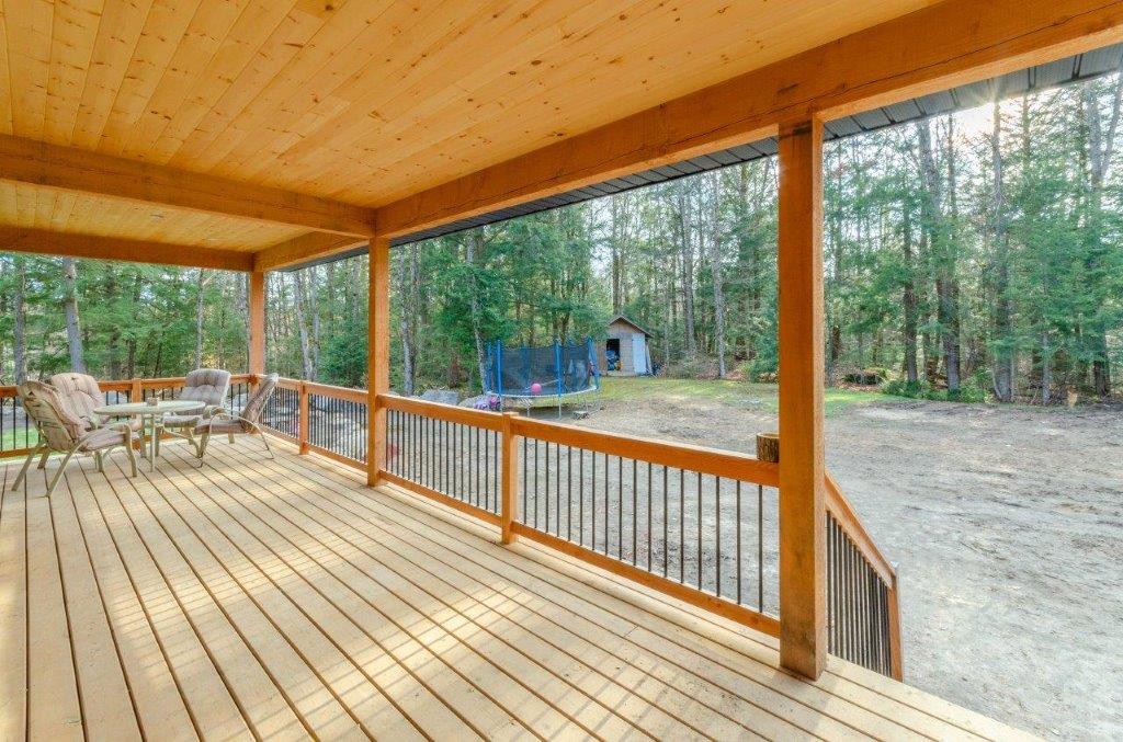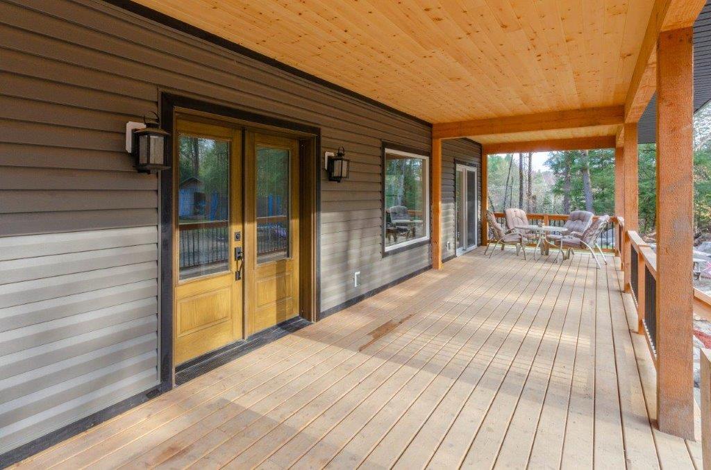 #2 – SURROUNDED BY NATURE: Tucked into a very private setting among towering trees is this estate-sized property. The house and yard are completely surrounded by forest providing great privacy in a beautiful country setting. Outside you will love the 10×40 covered veranda featuring exposed fir beams, a dining area with recessed lighting, and even the opportunity to make it a screened Muskoka Room!
