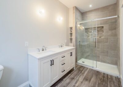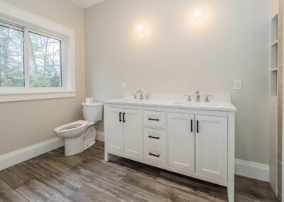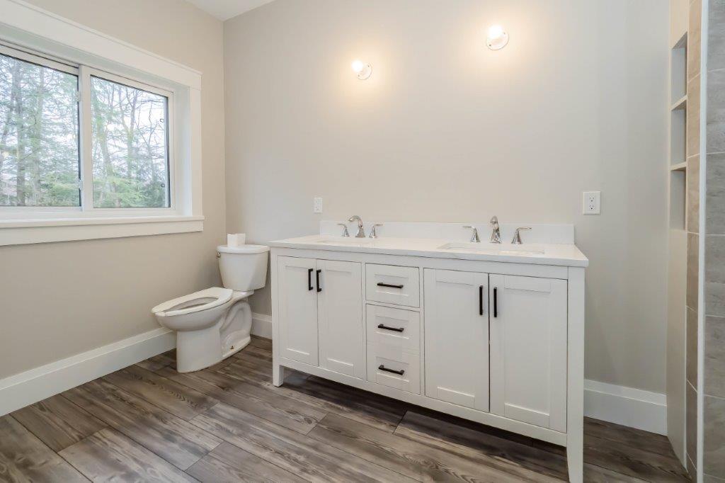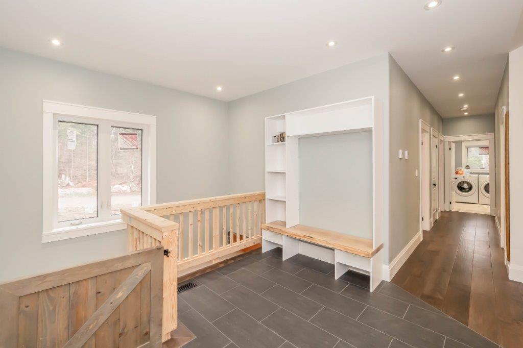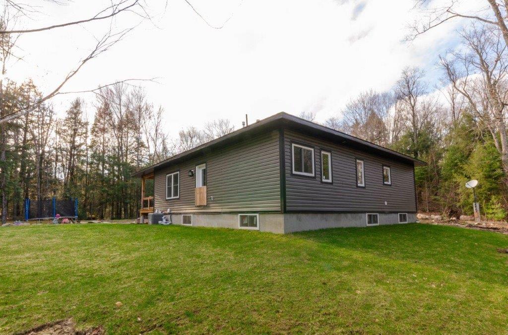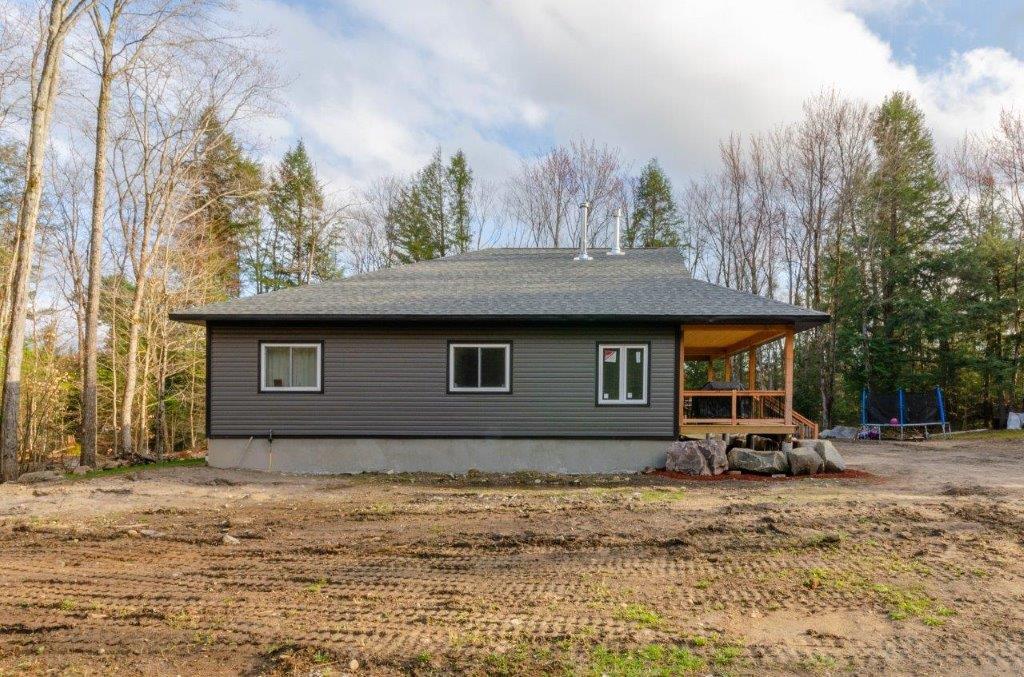 #4 – HIGH-END & CUSTOM-BUILT: Newly built, 40×40 custom home with some great features including engineered hardwood flooring, granite counters, drilled well, new septic and rock landscaping. The main floor offers 9-ft ceilings, 3 bedrooms, separate laundry room and a very spacious foyer. The Primary Bedroom provides a walk-in closet and newly finished, large ensuite. Downstairs also feels sunny and bright with 5 large windows, 9-ft ceilings, a woodstove, roughed in for a bathroom, and over 1400 sq ft to make your own.