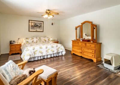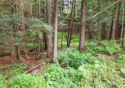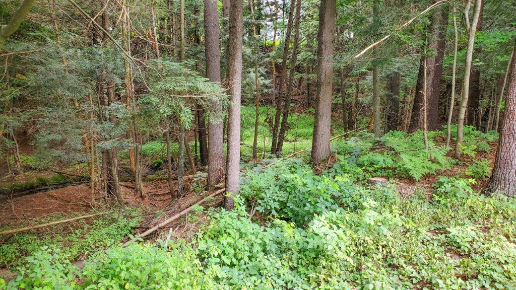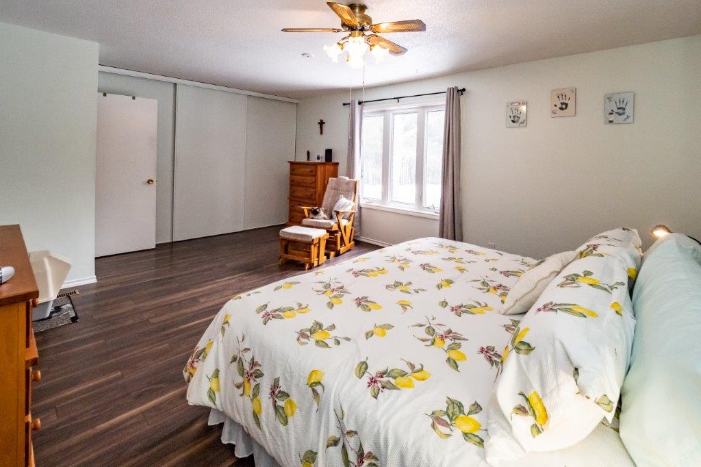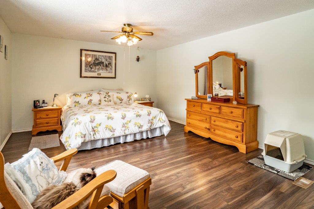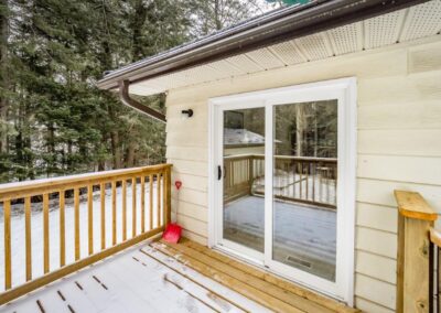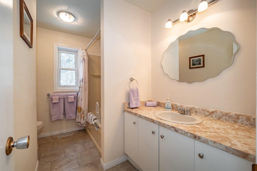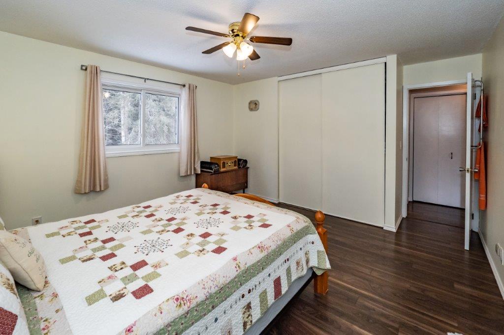 AMAZING LOCATION…This double-wide lot is level and landscaped with gardens and flower beds, and backs onto a creek. You are sure to have a private in-town experience feeling like you are living in the forest! Close to the high school and Sportsplex, and only 200-feet from South Monck Trail (a 7.5-km hiking and mountain biking trail).