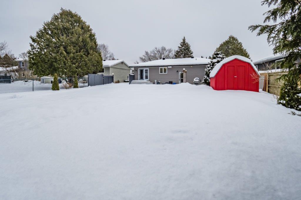 A large level lot which is fenced and landscaped, with an interlock driveway, BBQ gas hook-up, storage shed, and detached HEATED and INSULATED GARAGE tucked perfectly at the back of the good sized backyard.