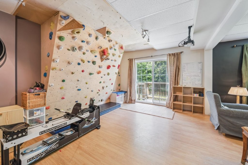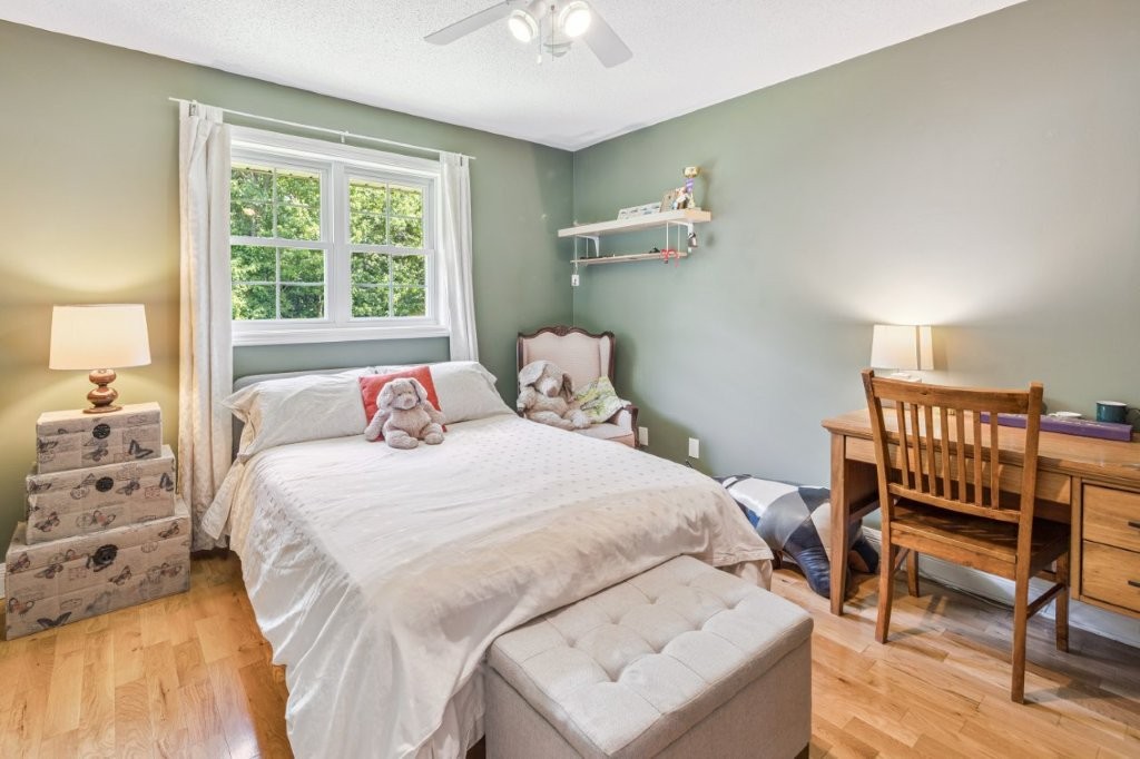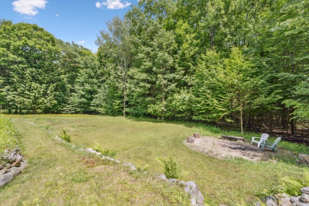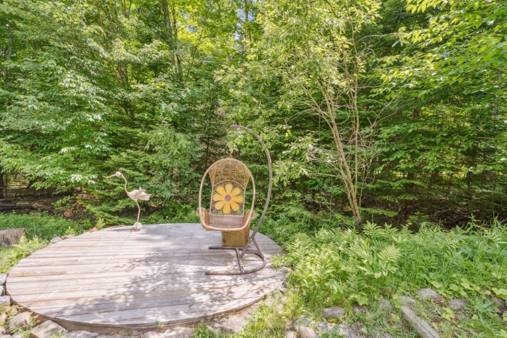 Nearly 1/2 acre of land, backing onto a forest, with a tree lined lot on both sides, add to the incredible privacy. This lot is tiered with level areas in the front yard and backyard which has been great for this family (sledding and skating on their backyard rink).