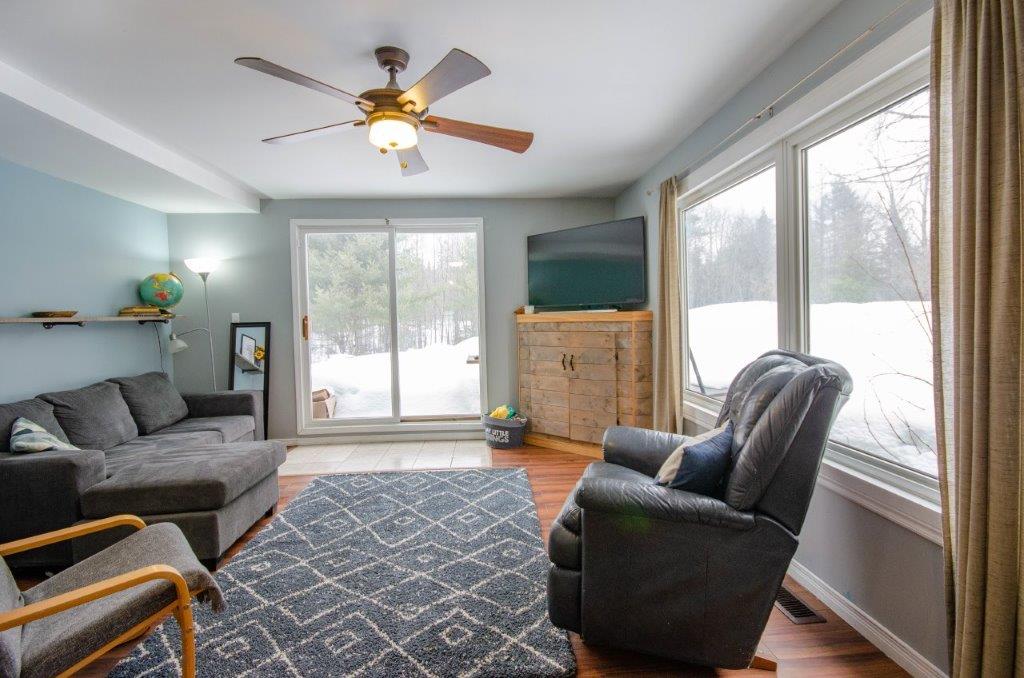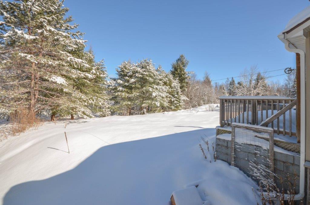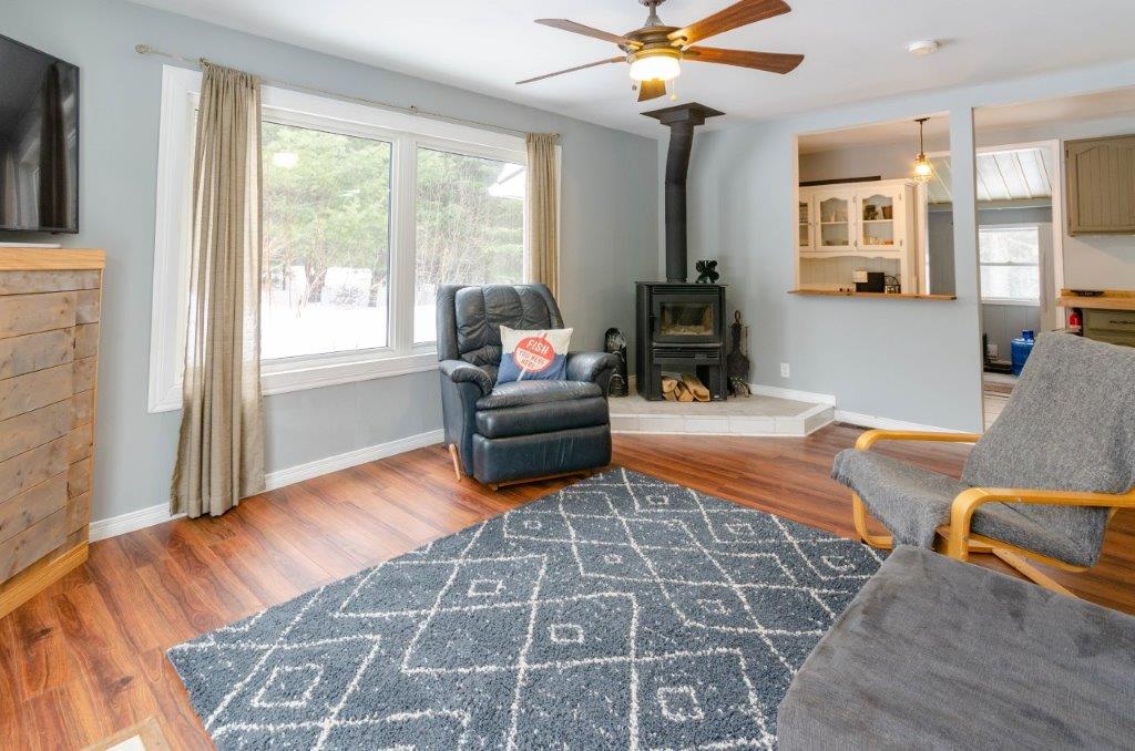 SOLD! 1400 sq ft, 3-bdrm, 1.5 bath, bungalow on nearly 1.5 acres of PRIVACY with a cleared yard area, exposed Canadian Shield, forest area, and firepit with rustic benches.