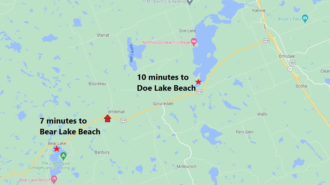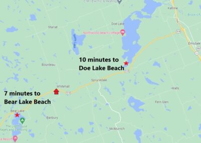 Located 30 minutes from Huntsville, only 7 minutes to the Bear Lake Public Beach, and 10 minutes to the Doe Lake Beach/Playground and Boat Launch. Just 250ft from the Seguin Trail (and Park-to-Park Trail) used for walking/hiking, ATV/UTV, Horseback, Cycling and Snowmobiles. Sprucedale is just 5 minutes away with a community centre, playground, ball diamond, fire department, post office, and general store/gas/LCBO outlet.