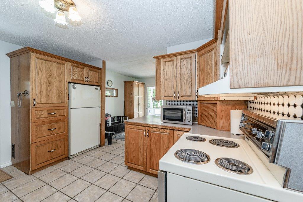 The main floor of this home features beautiful wood flooring, some spacious bedrooms including the primary bedroom with two double closets and ensuite privileges. The large kitchen has great cupboard space and offers two doors to access the covered deck and double carport. Downstairs, there is a large common space to hang your hammer and is great for additional storage.