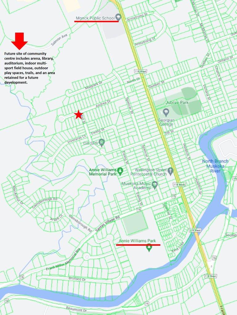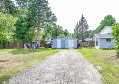 Great privacy in the home is provided by cedars lining the roadside, and a large grassy area beyond the storage sheds provide loads of space for a garden, swing set, and to enjoy the outdoors. This corner lot is on a dead-end street with limited traffic. A quiet location, within walking distance to all amenities, including the new Bracebridge arena and library (projected to be built), grocery and clothing shopping, and many options for dining. Just a 6-minute walk to Monck Public School, and a 10-minute walk to Annie Williams Park to enjoy the playground, beach on the Muskoka River, ice skating at the outdoor rink, and snowshoeing.