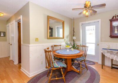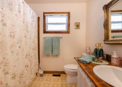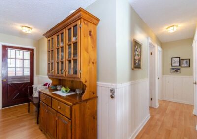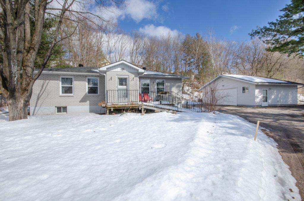 The large, private yard offers a natural backdrop of rock outcroppings and mature trees. The 32×24 garage has the works!…hydro, water, insulated, drywalled and painted, and a door opener. The ramp at the front entrance of the home makes for easy access and the side door is great to easily unload groceries into the kitchen.