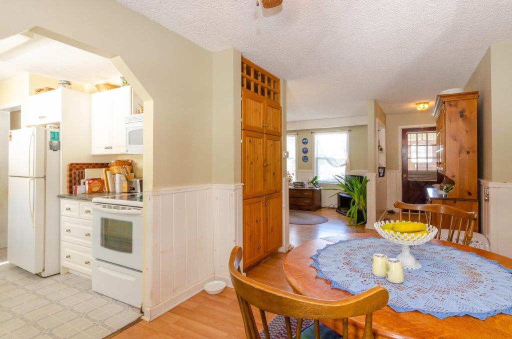 SOLD!! Solid brick, 3-bdrm bungalow tucked in a mature and desirable in-town neighbourhood surrounded by mature trees. The main floor features upgraded windows, laminate flooring, wainscoting, and a great walk-out from the dining room to the back deck. The full, dry basement, with a full height ceiling, has a great space to finish a recroom, office or 4th bedroom.