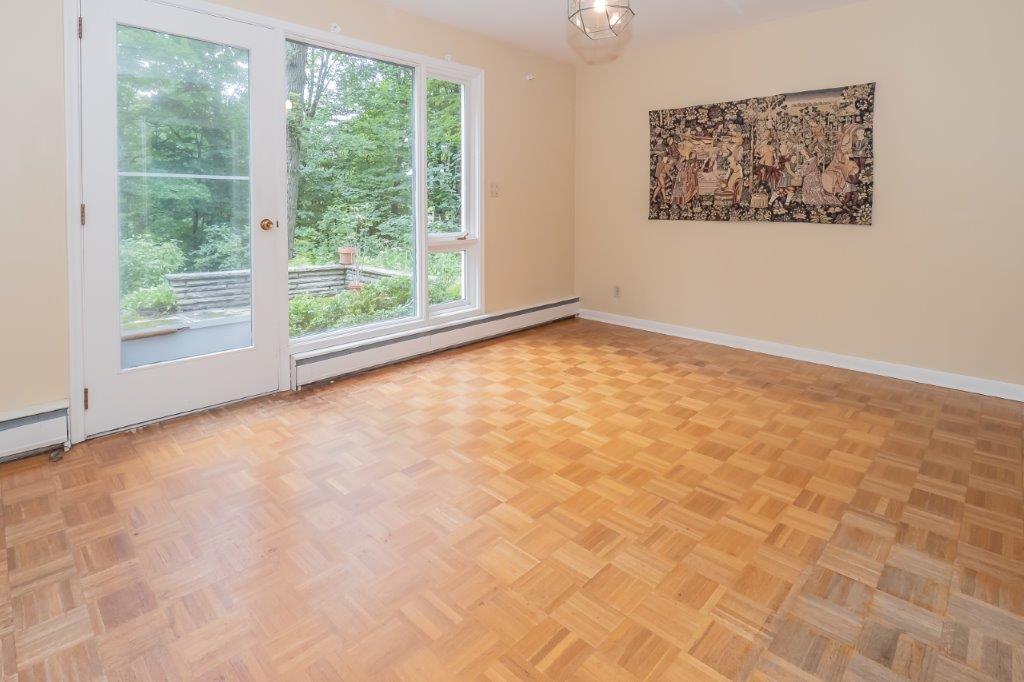 Outside, the stunning backyard retreat is incredibly private, surrounded by nature, trees and perennial gardens. This home backs onto a ravine where you have your very own Muskoka forest in your backyard, yet this quiet neighbourhood is close to downtown, shopping, and dining. Also, you are just an 11-minute walk (1km) to Bass Rock to go for a dip or relax riverside on the Canadian Shield. This home is vacant and ready for your designs to breathe modern beauty back in it… making this a great opportunity for the handyman or contractor.