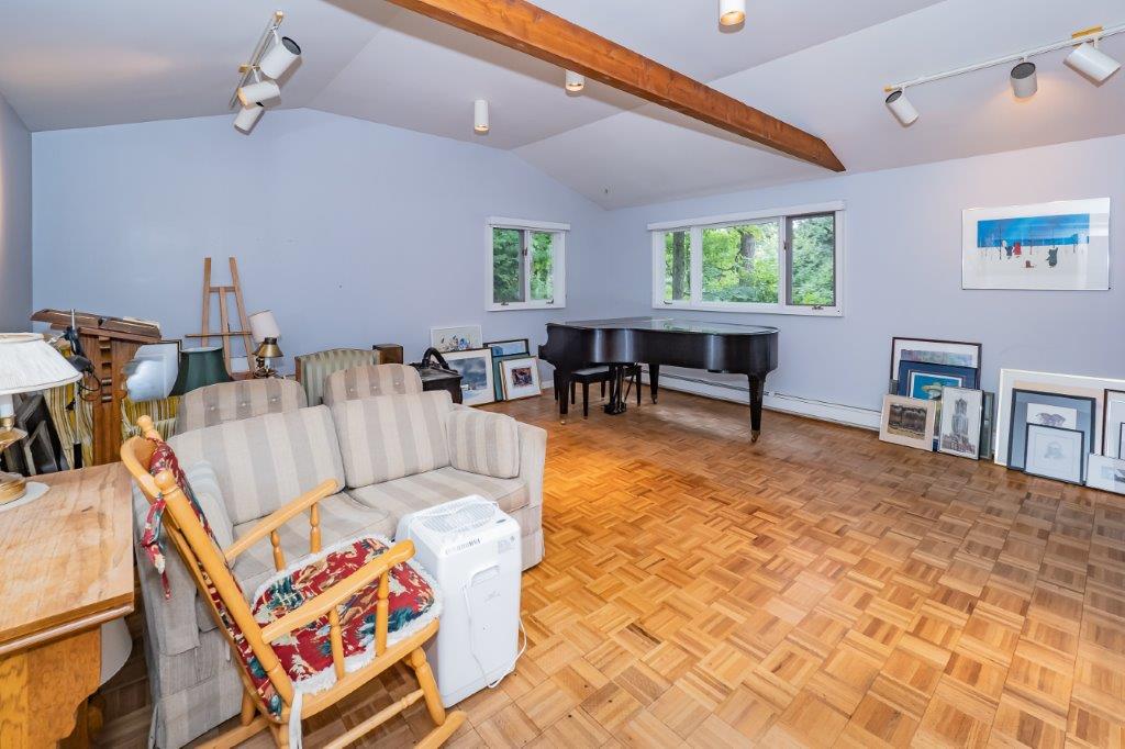 Upstairs on the 2nd floor there are 4 large bedrooms with wood floors, a 4pc bathroom and 2pc ensuite. The basement is partially finished and has nearly 1000 sqft of potential living space among the 26-ft recroom, workshop area, and 20×18 bonus room (plumbed for laundry), plus over 150+ sqft for storage in the utility room. The attached greenhouse is accessed via the main floor family room and the basement bonus room.