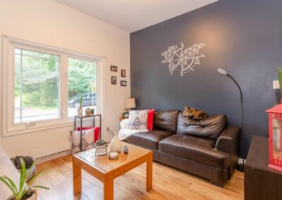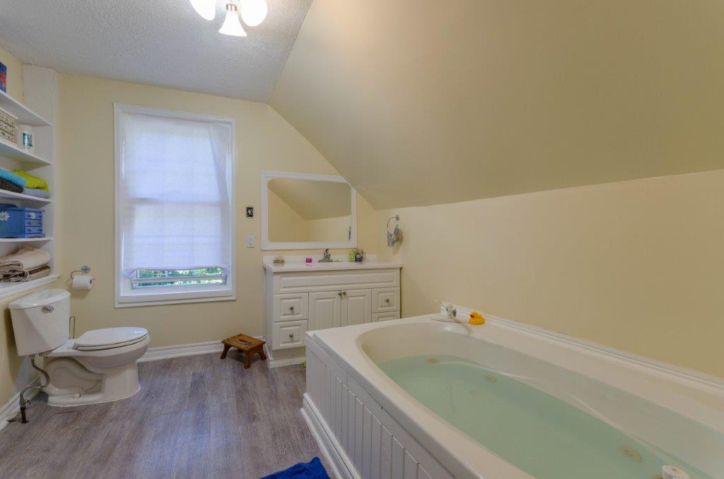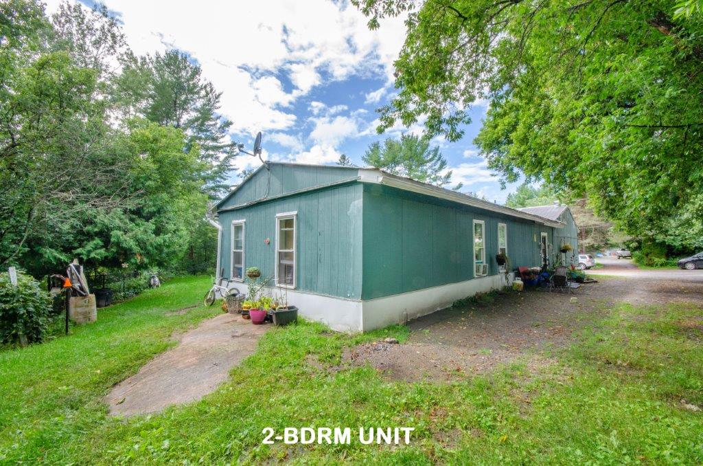 2 floors living space. Rented Water Heater. Basement hatch is in foyer. Stone foundation with spray foam insulation. Water shutoffs for all units in basement. Large private deck off of Living Room. Shared access to storage room with Unit 1. 1 bedroom on main floor, 2 bedrooms on the 2nd floor. 4pc bathroom on 2nd floor offers ensuite privileges to both bedrooms. In-suite laundry hook-up. Includes fridge, stove, freezer and new dishwasher. Gas fireplace in living room. Recently invested $10,000 in renovations including upgrades to Main Bathroom.