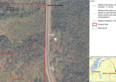 SOLD! 10 acres of land to build your dream home! Newly severed property found just 12 mins from downtown Huntsville. 2 possible entrance locations to 2 possible building sites. Topography is slightly rolling, with a gradual decrease in elevation towards the wetland. This lot has large areas for a building, with all or good portions having gentle terrain and NO rock outcroppings/drainage features/other constraints which would prohibit proper development.